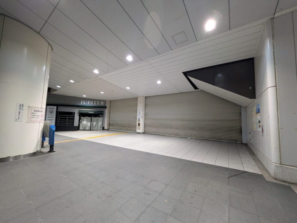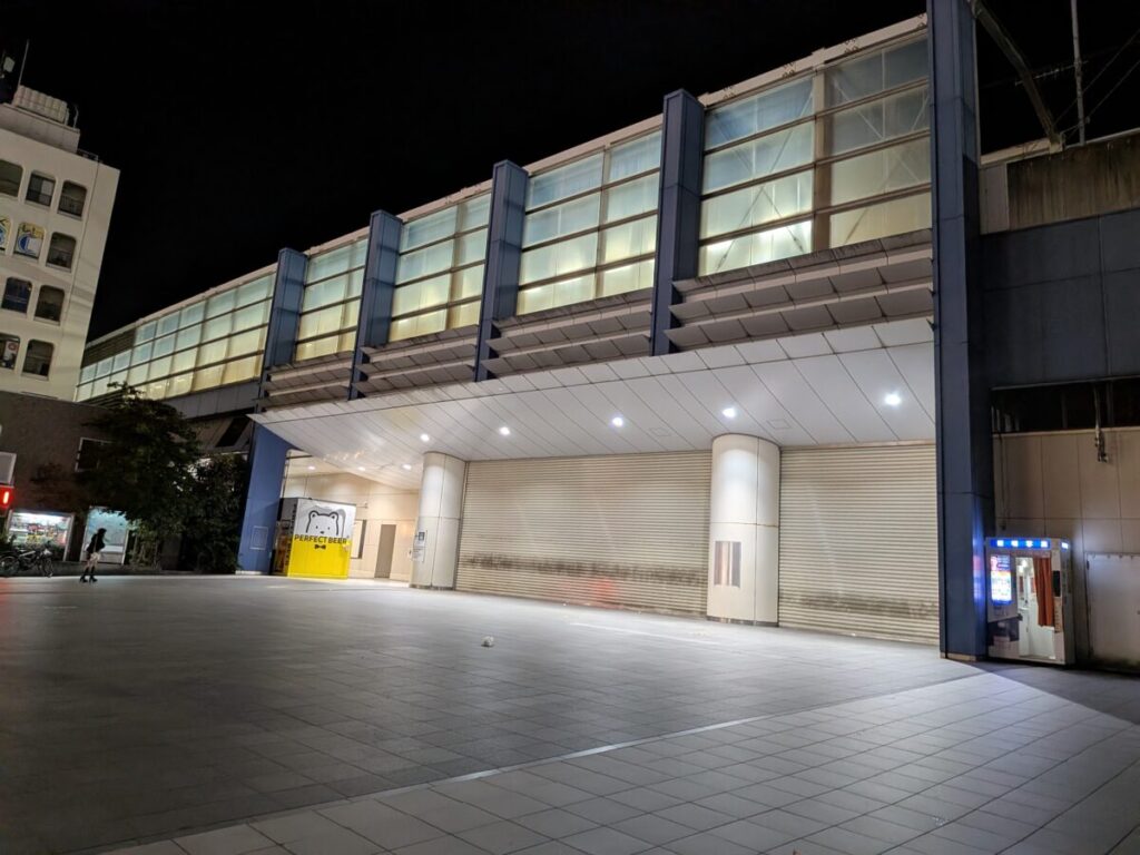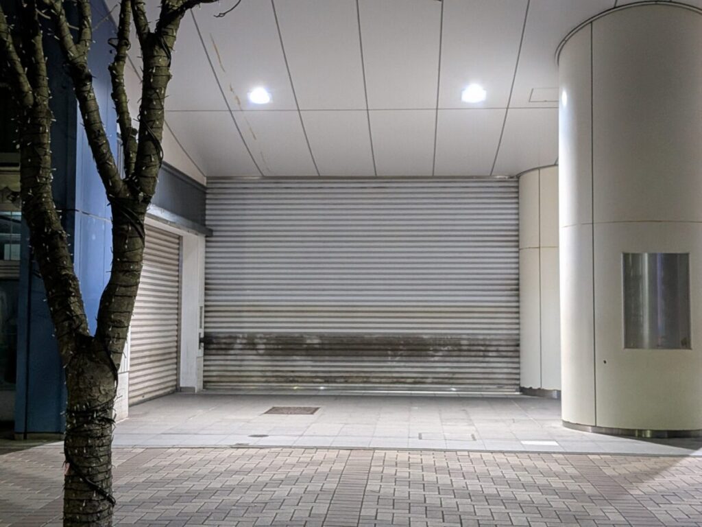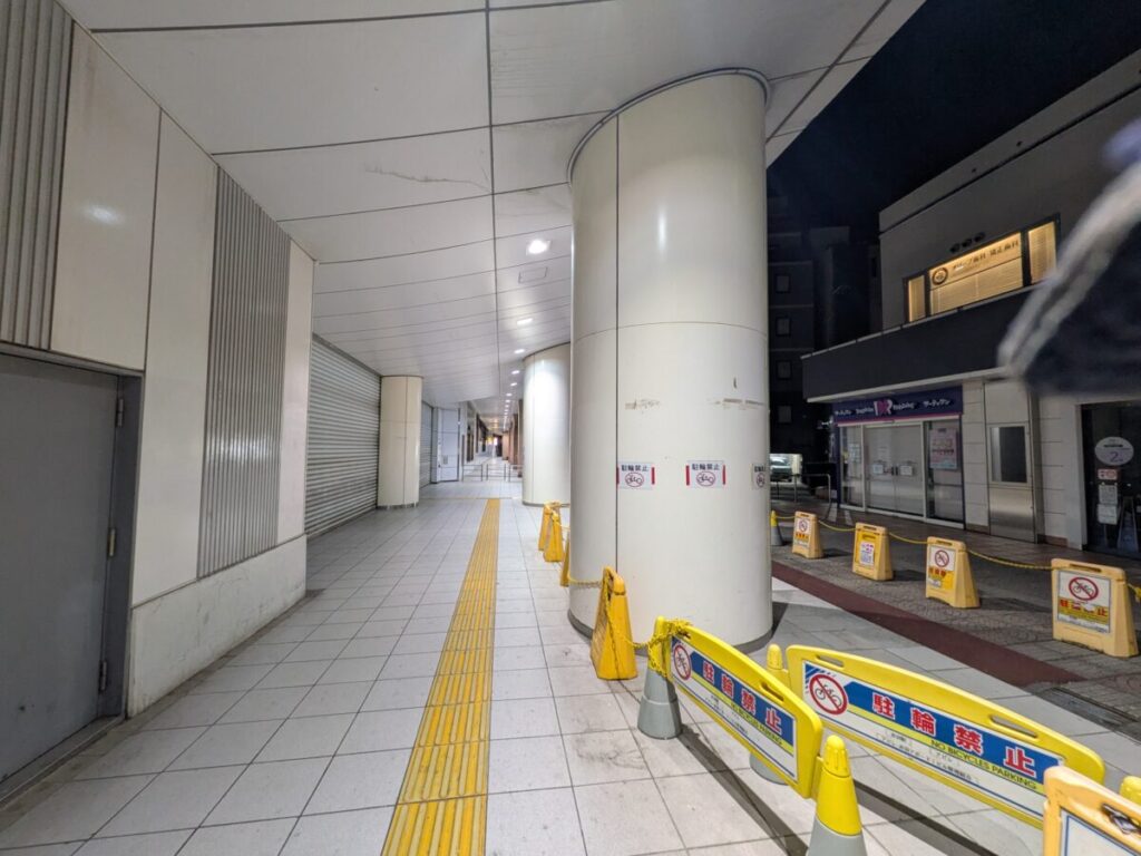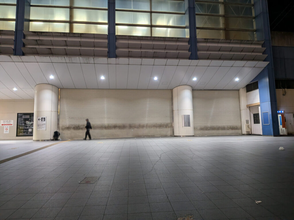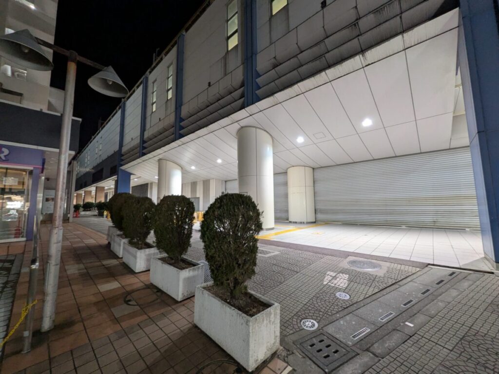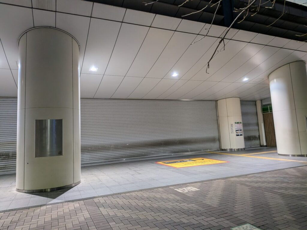 東口・南口・西口をぐるっと回ってみると、どこもシャッターが下りた静かな風景が広がっていました。