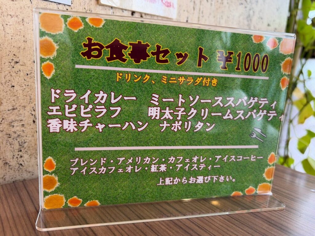 今回はこちらのセットのうち、「エビピラフとアイスコーヒー(1000円)」をチョイスしました!楽しみ〜!