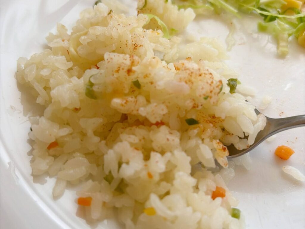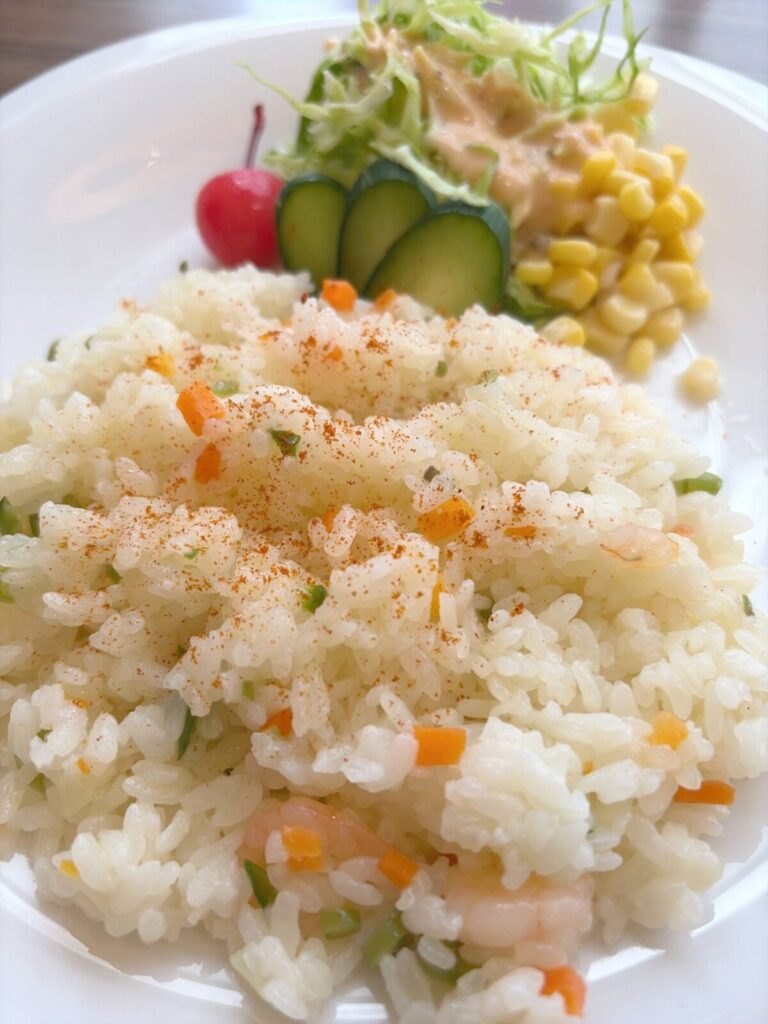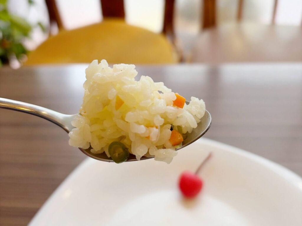 ん〜うまい♪ほんのり甘くて、これぞピラフという王道の味だ☆彡
