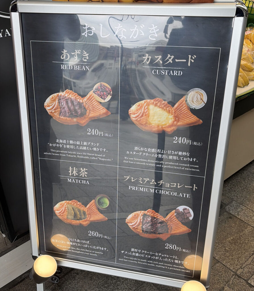 十条銀座商店街に「たい焼き さわ田」が新オープンしたみたい!店頭のメニューを見てきました♪