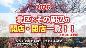 【2026】北区とその周辺の開店・閉店一覧!*2月26日 更新