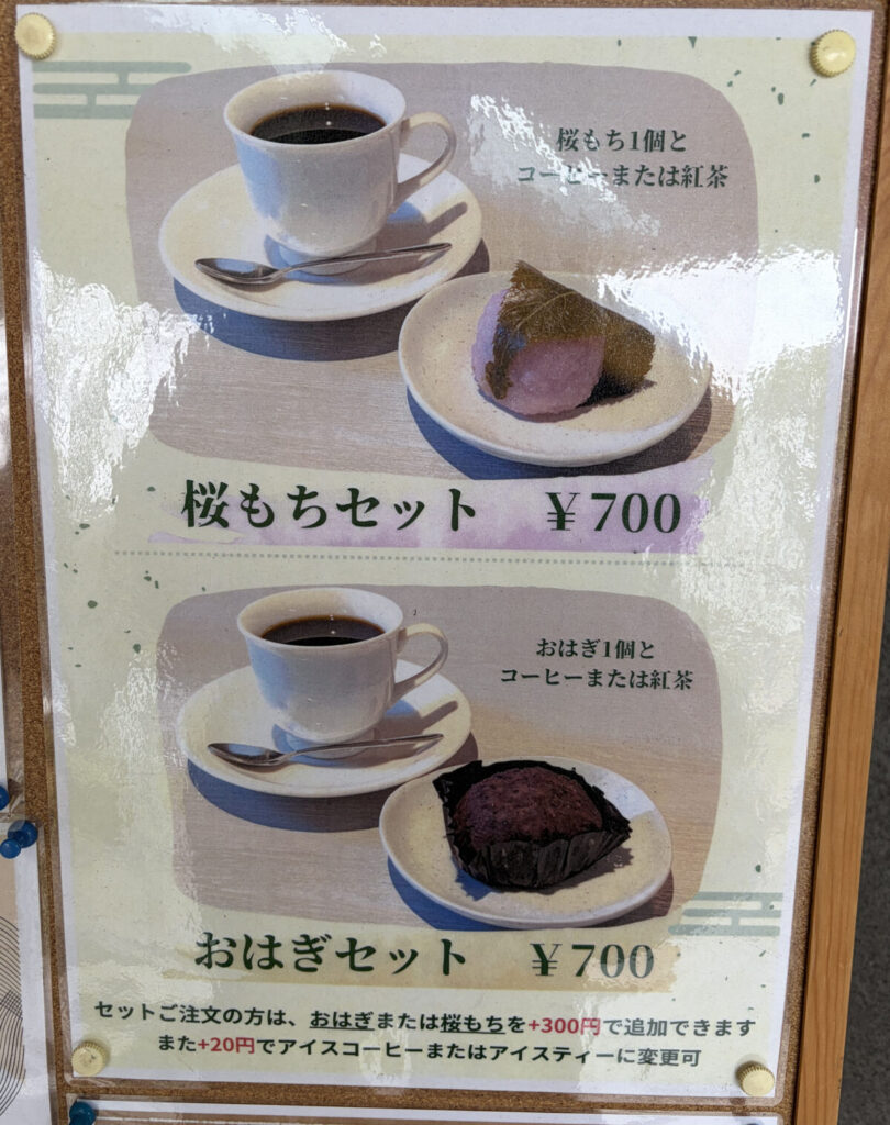 飛鳥山公園の博物館内にある「カフェ・ヴァーチュ」で、『おはぎ』と『桜餅』をテイクアウトしてきたよ!