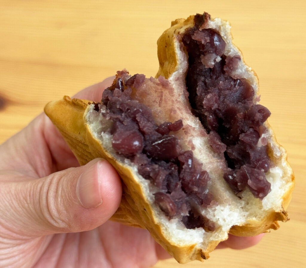 しかも、あずきもまた、みっちりぎっちり詰まってるじゃないの。すごいな…。では、ガブっと!