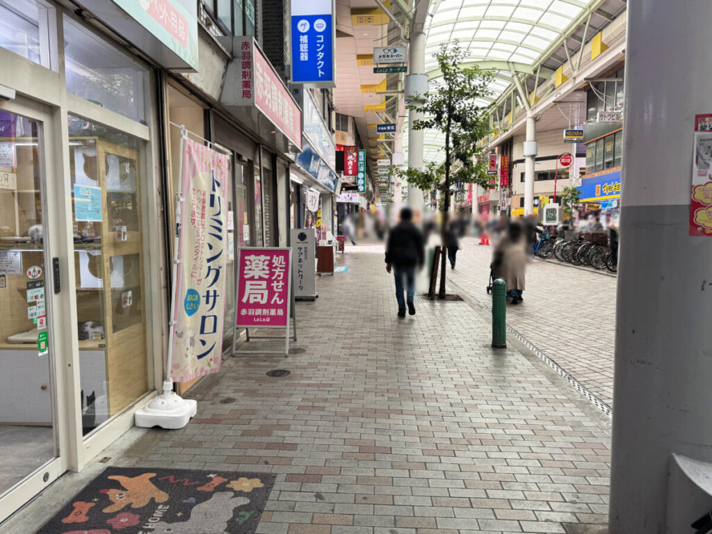左は赤羽駅方面。すぐ隣に「うちのCoCoペットショップ」があります。