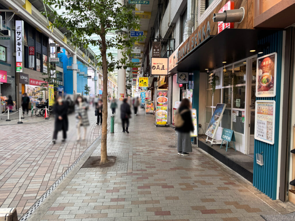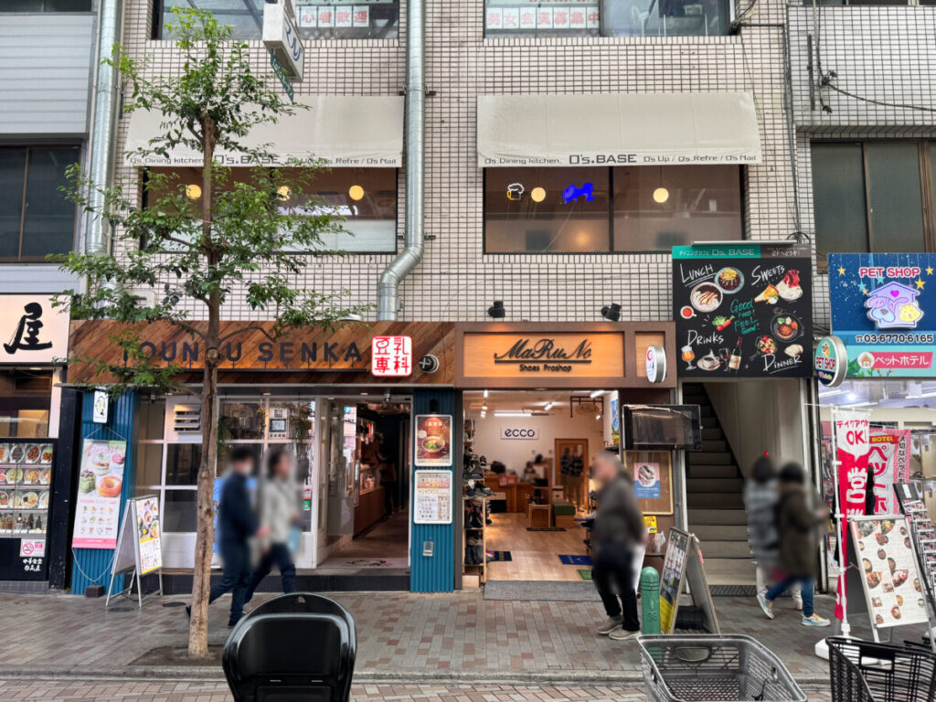 入り口を背にして右はこんな感じ。すぐ隣に「マルノ靴店」があり、「豆乳専科」や「日高屋」などがあります。