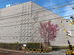 【北区】コーセー 先端技術研究所と都電の踏切前の桜,満開に近づいてる!