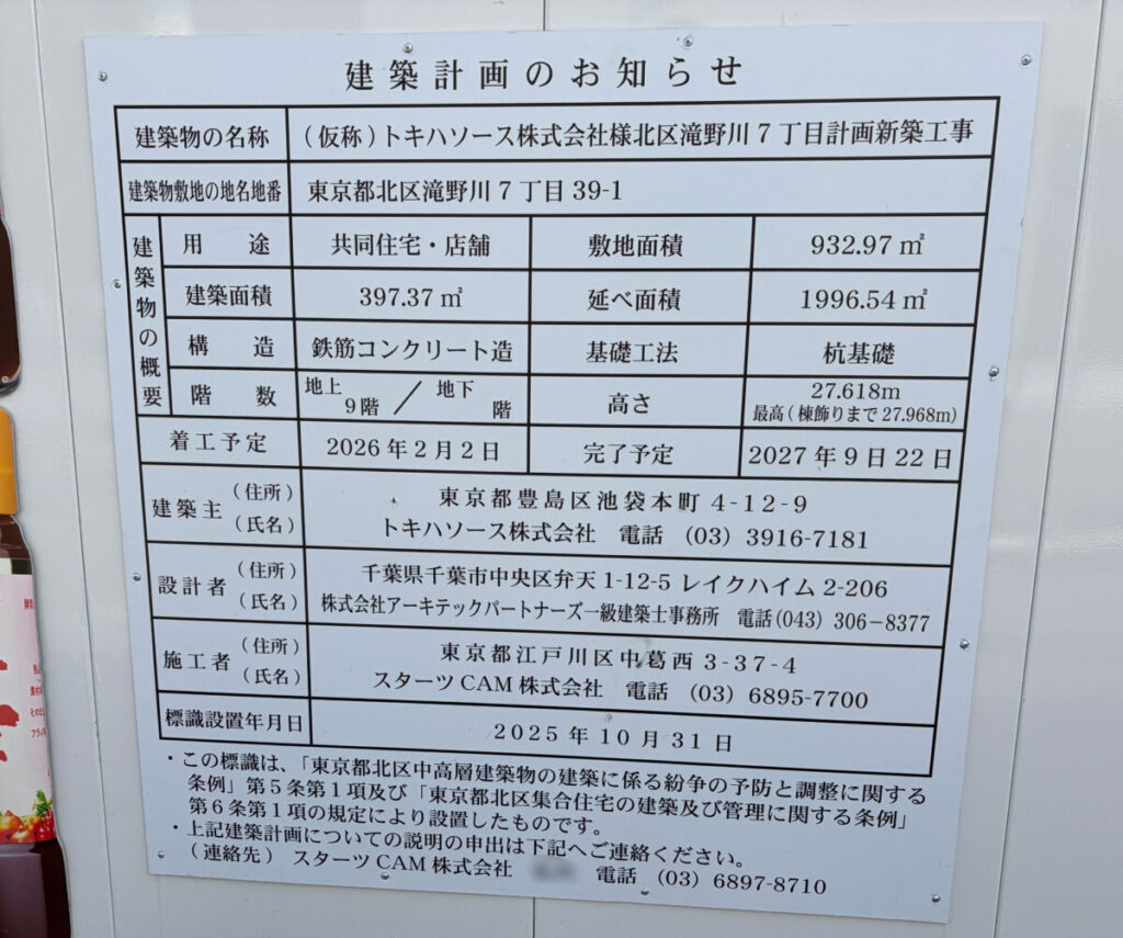 滝野川の「トキハソース」新本社の建設工事が始まってる!「トキハソースショップ(仮)」2028年OPEN予定ともでてました。