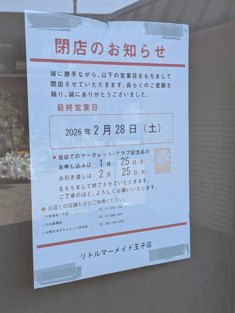 王子駅前のリトルマーメイドが閉店したみたい。