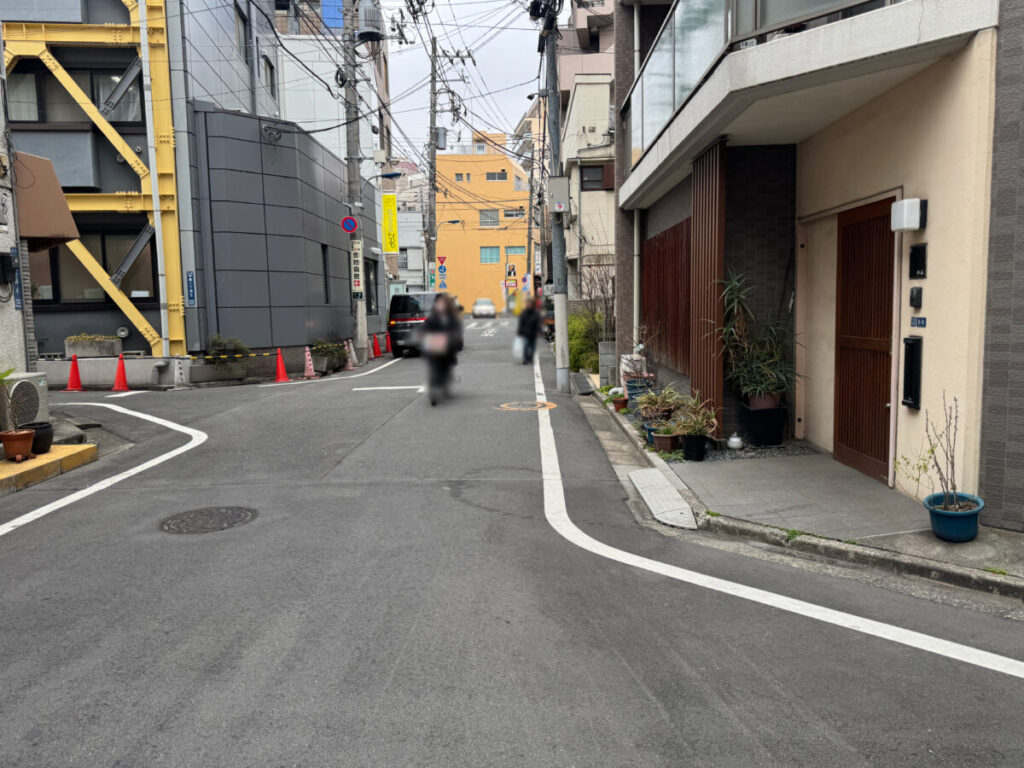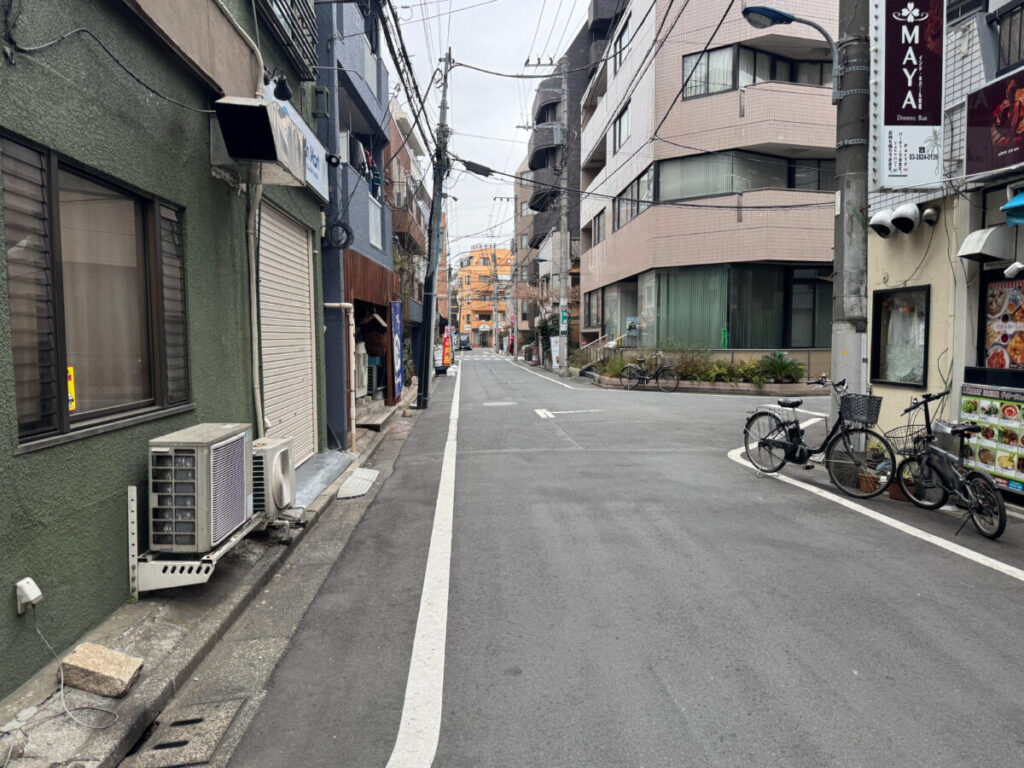 入り口を背にして右はこんな感じ。すぐに「金地病院」や「御菓子司中里」があり、アザレア通りにぶつかります。