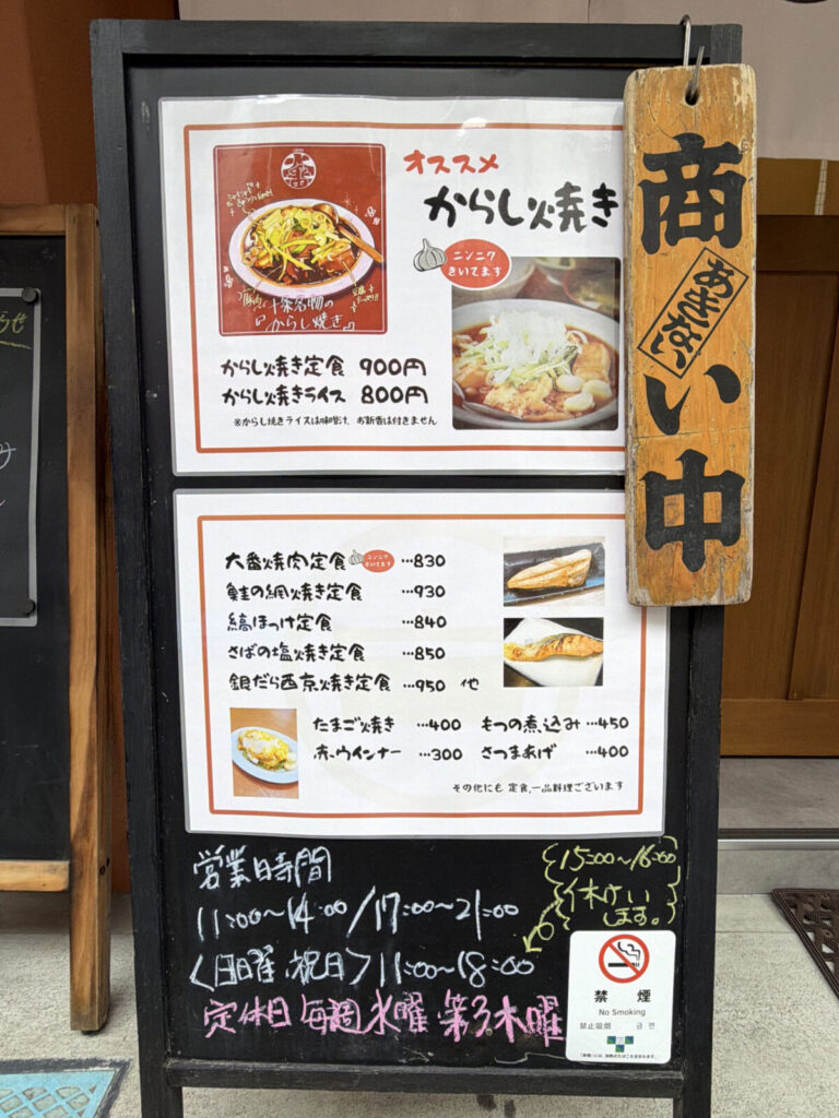 お昼時、お店に行ってみると店頭にメニューが出てましたよ。