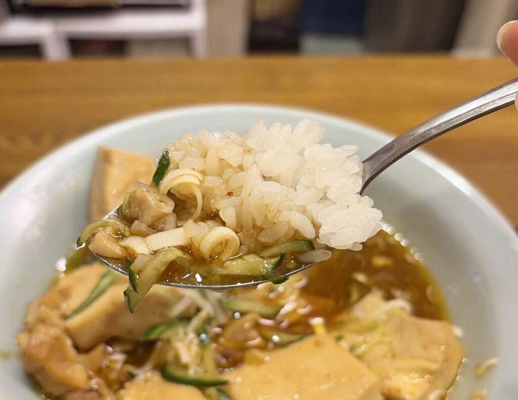 このタレを堪能するには、ご飯と一緒にスプーンでかっこむのが一番だ!