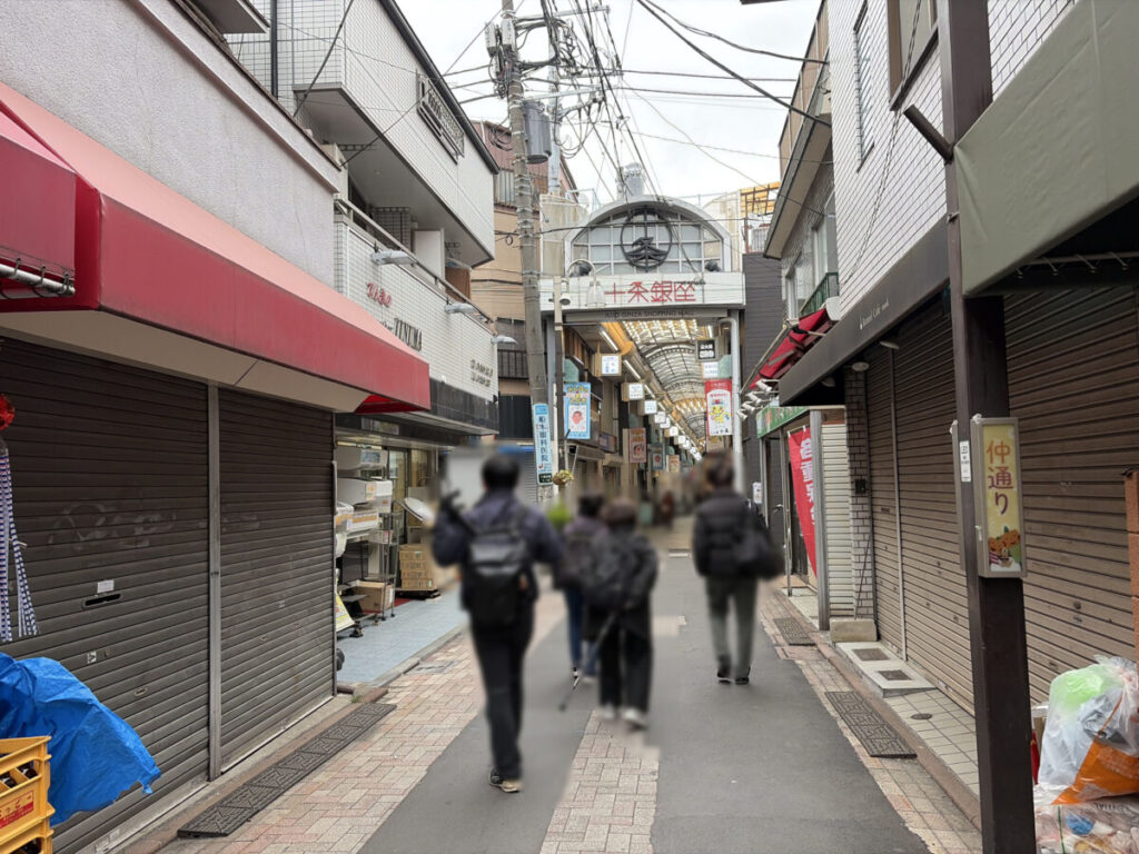 お店を背にして右はこんな感じ。隣は「Bonnel Cafe nook」で、さらに行くと十条銀座西通り。