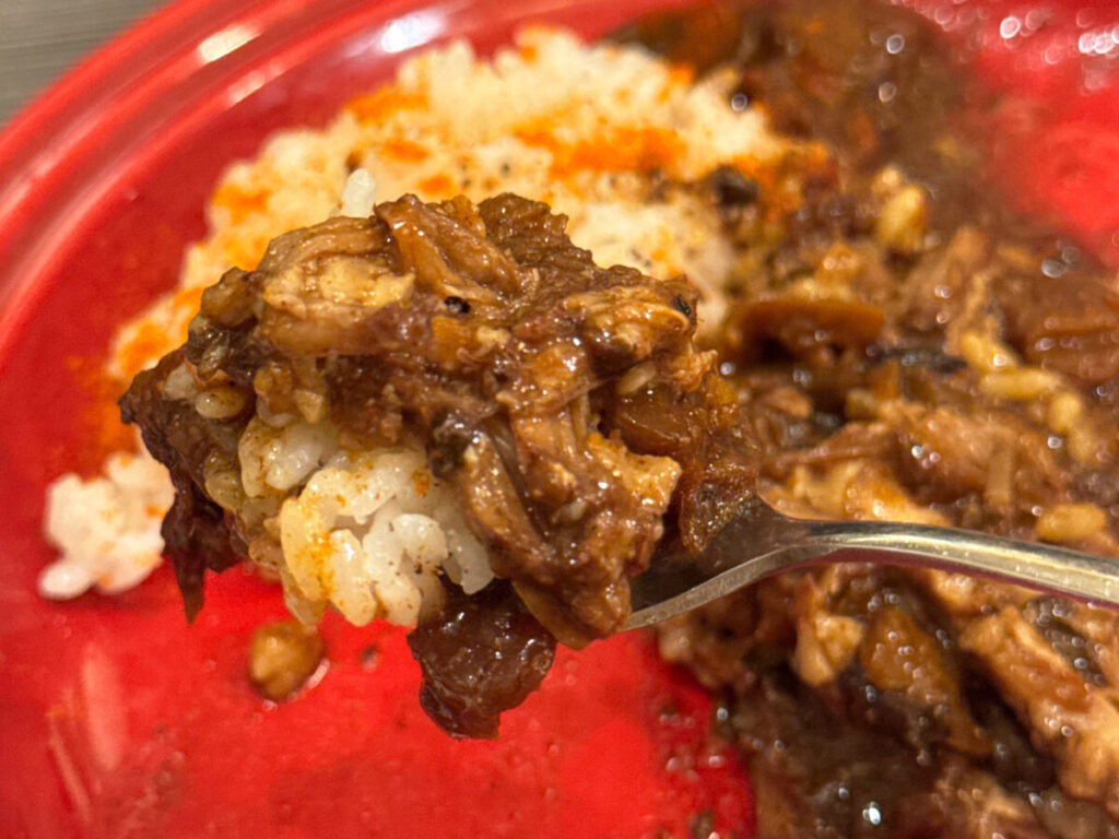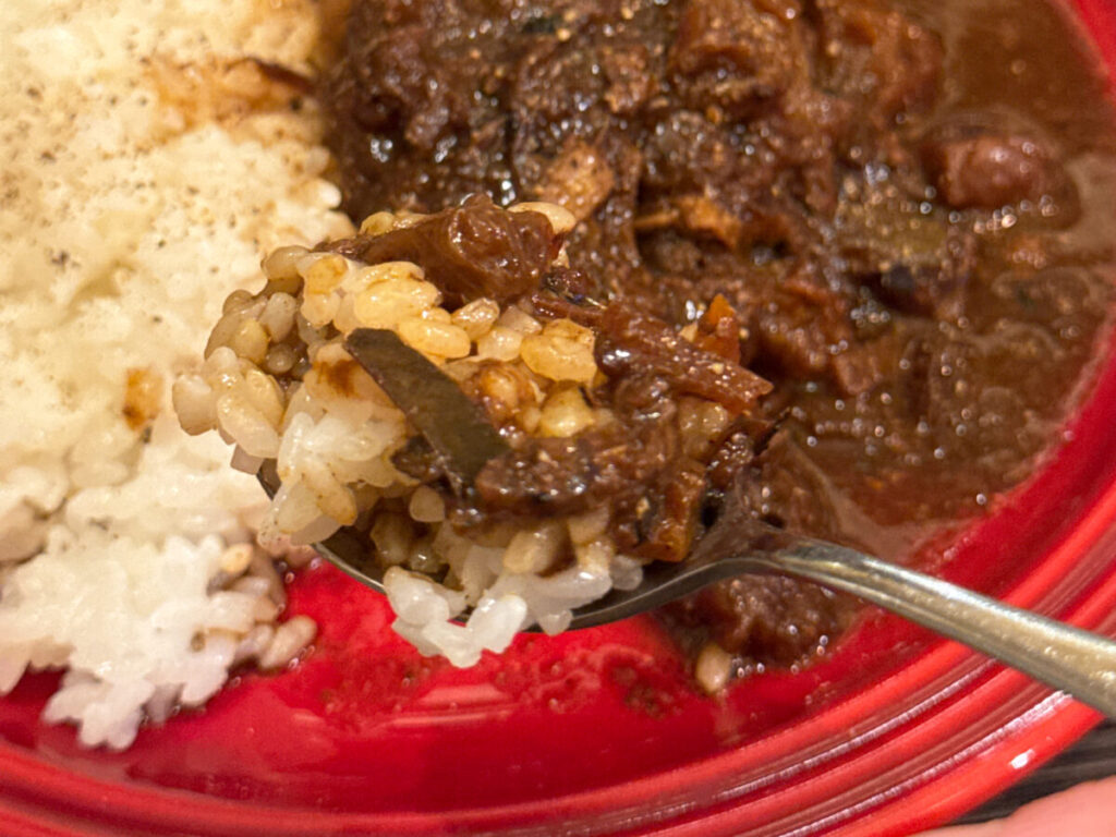 ご飯と合わせると、さらにカレーの主張が際立つのがすごい…。スプーンが止まらんぞ、これは。