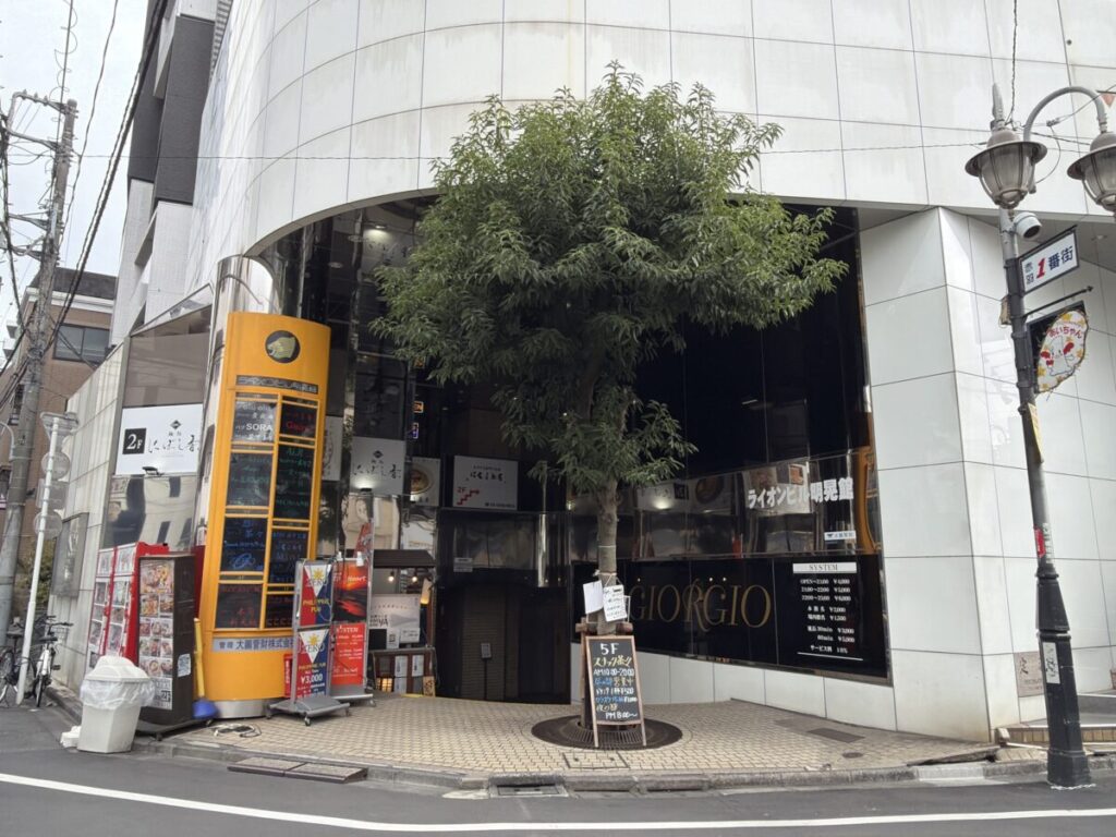 ビル入り口を背にして右はこんな感じ。すぐに「やきとりの扇屋 赤羽駅東口店」や「貝酒場かきべえ本店」があり、さらに行くと「リカースタジオ清水屋」があります。