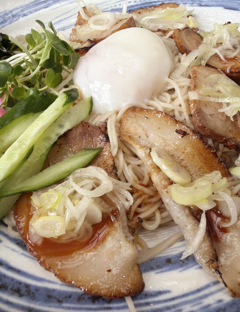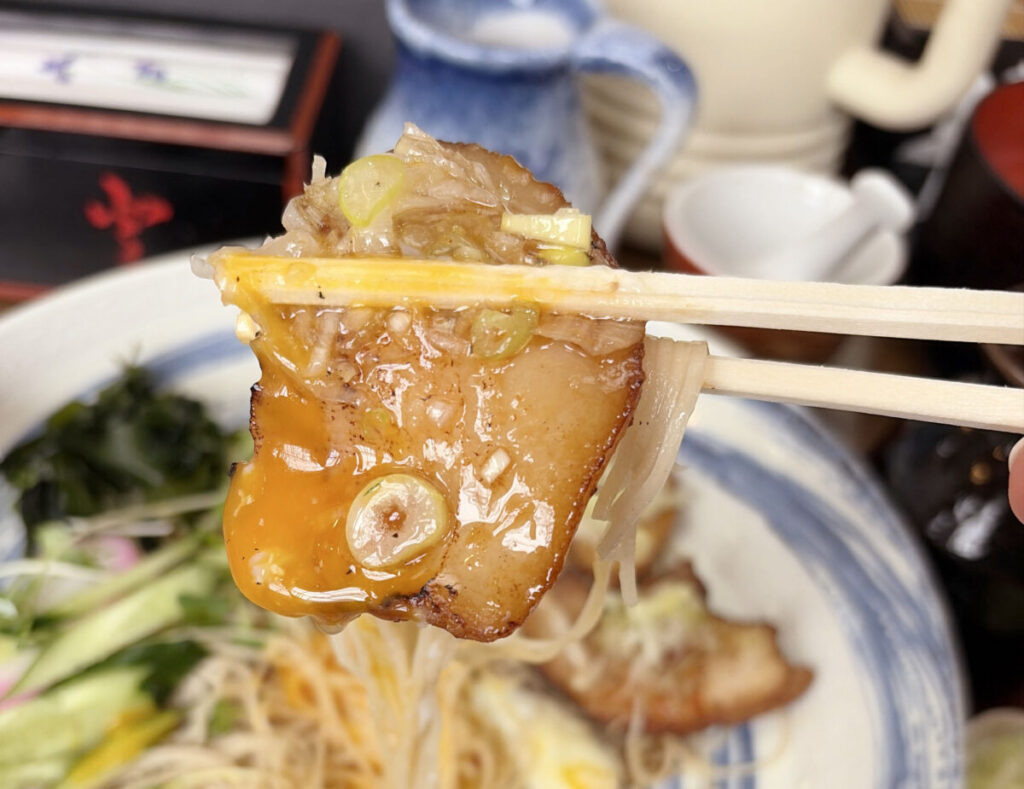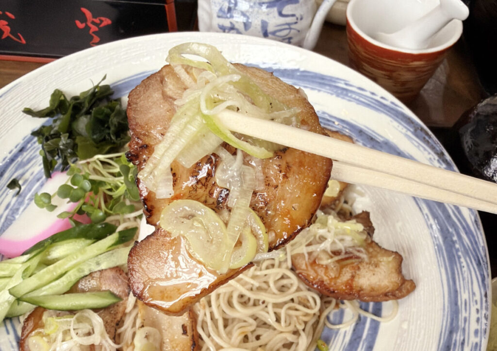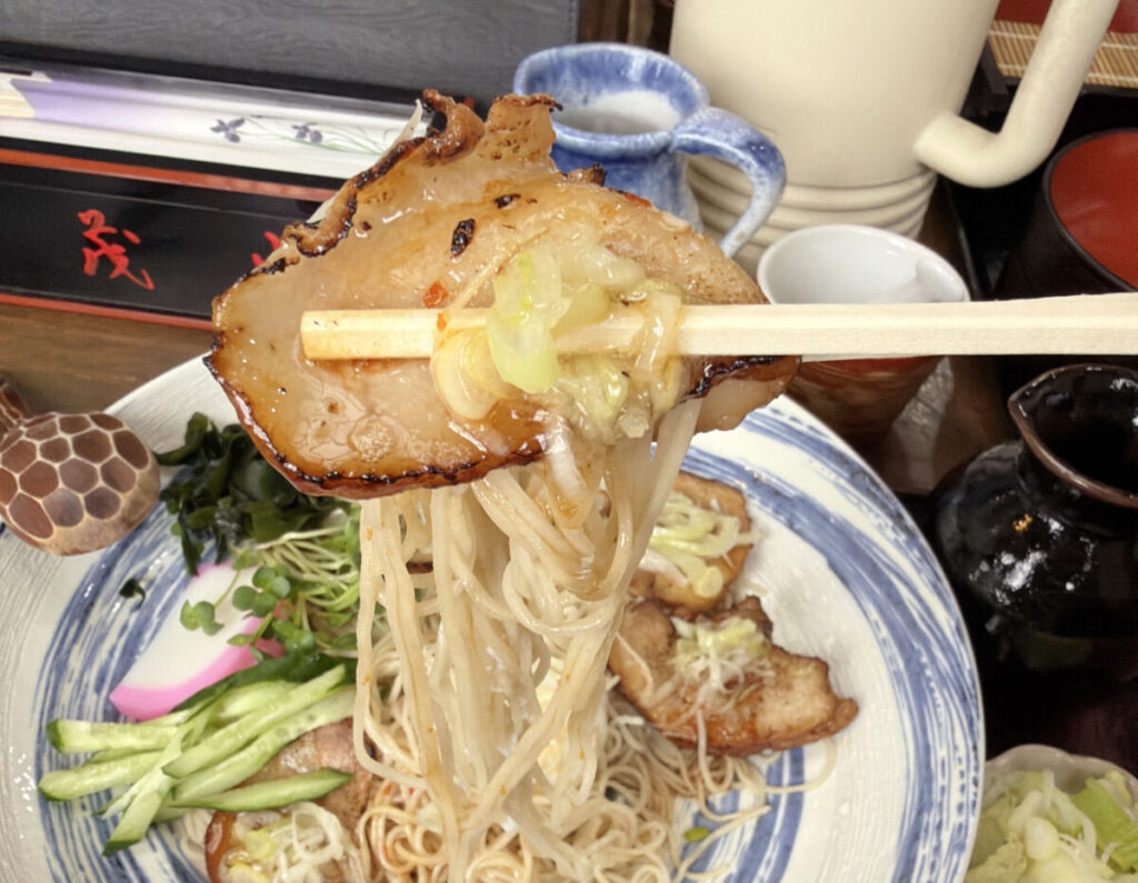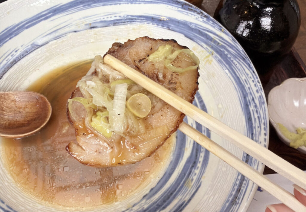 香ばしいチャーシューにお蕎麦、最高に合うんです。