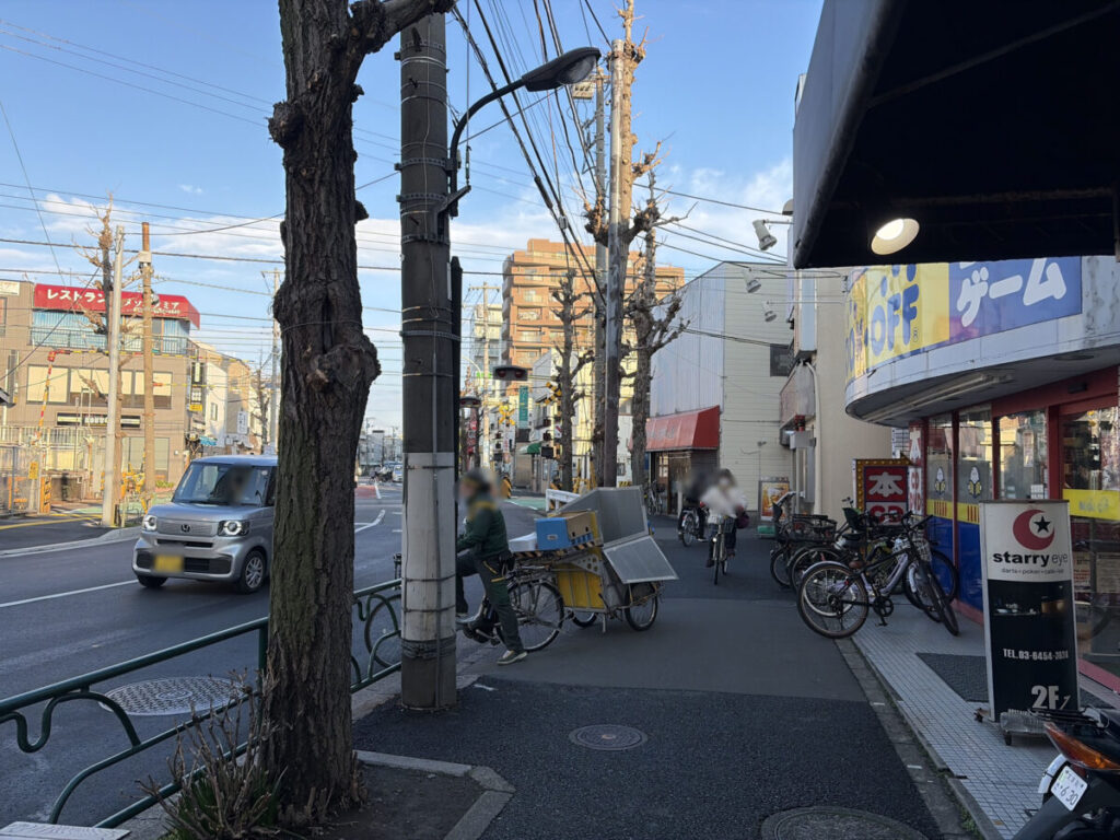 お店を背にして右はこんな感じ。すぐに「BOOKOFF 十条駅前店」や「大吉飯店」があります。
