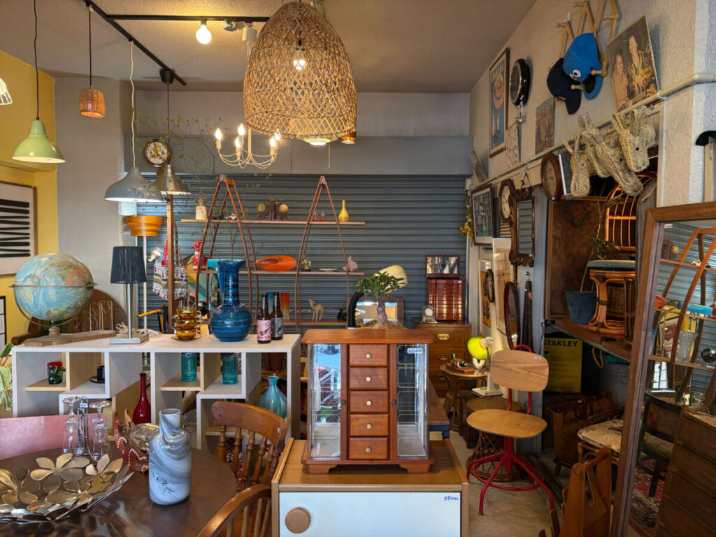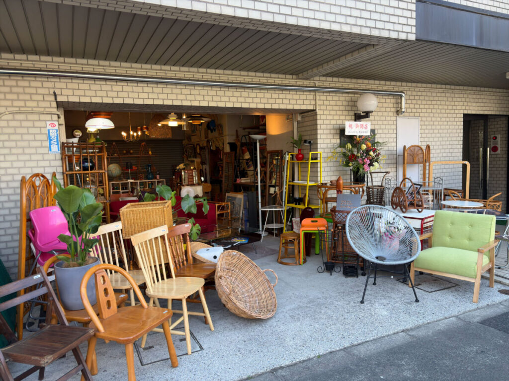 早速お店に向かうと、お店の外にも椅子や雑貨がぎっしり並んでいます!