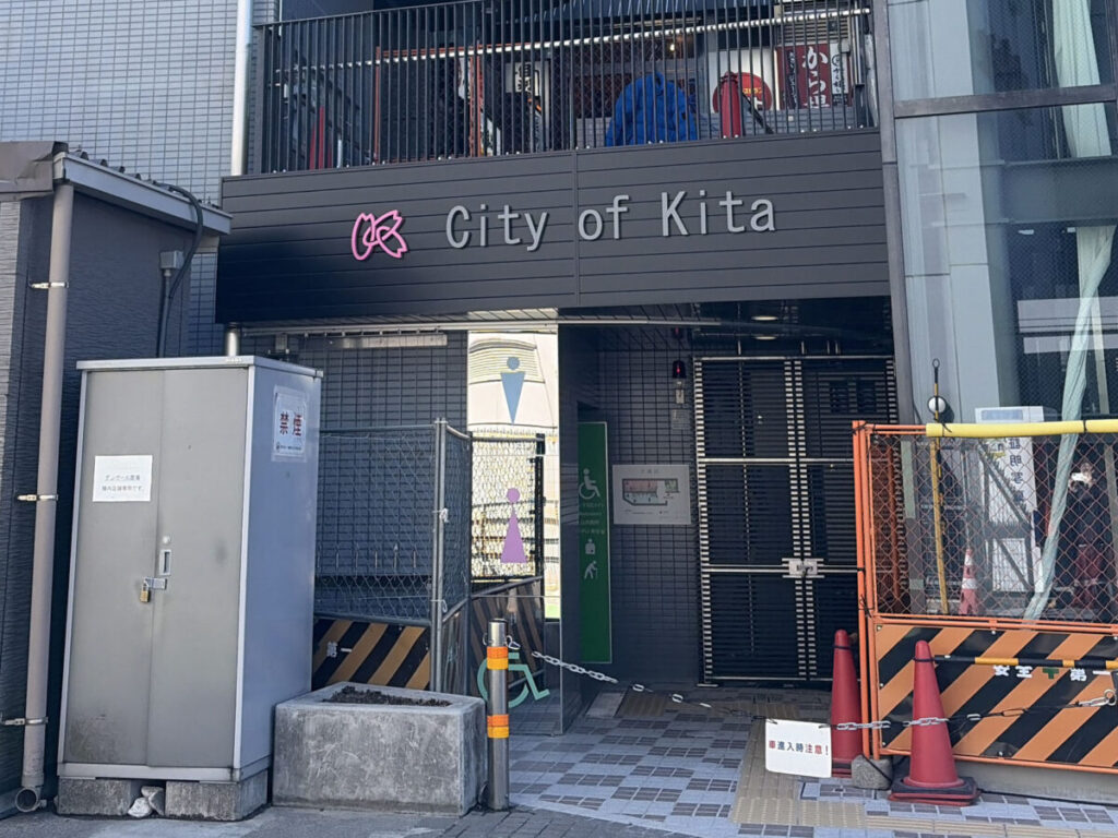 トイレの入り口上に「City of Kita」と北区のロゴマークが出現してる!