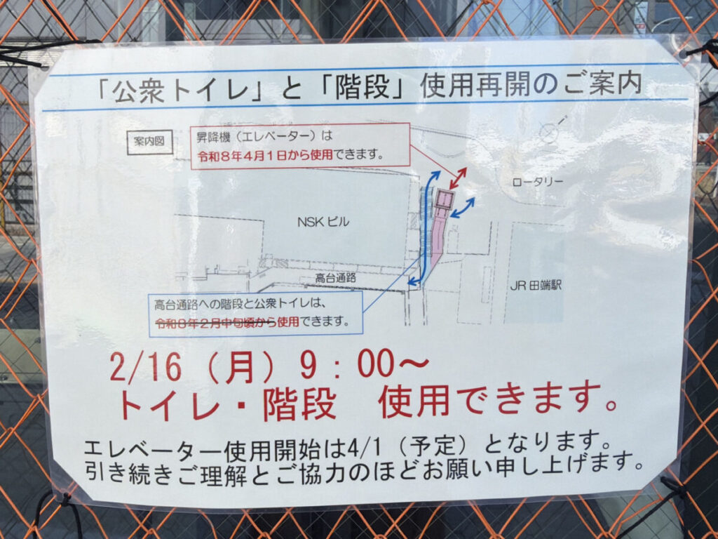 田端駅前に建設中のエレベーターですが、工事の囲いが取れていました!