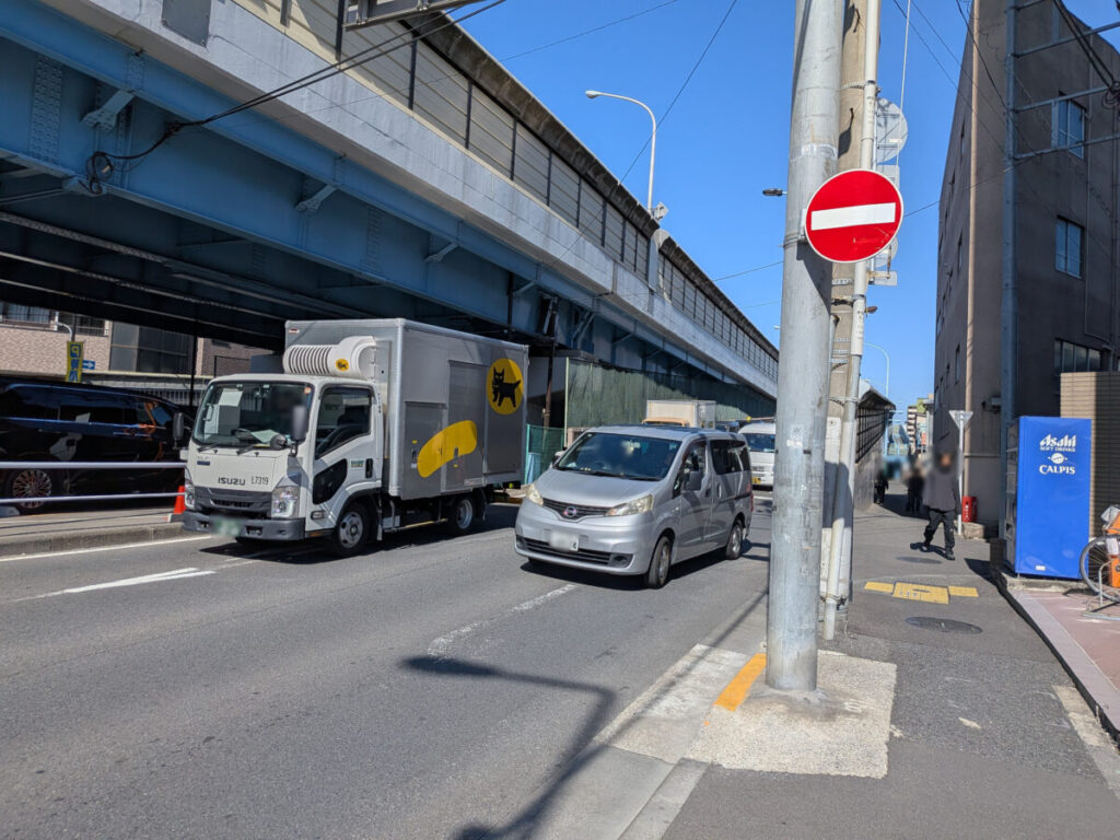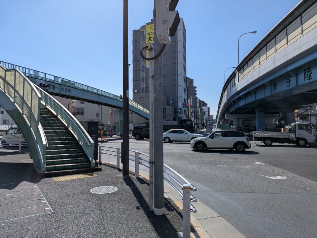 左です。目の前に神谷陸橋があります。