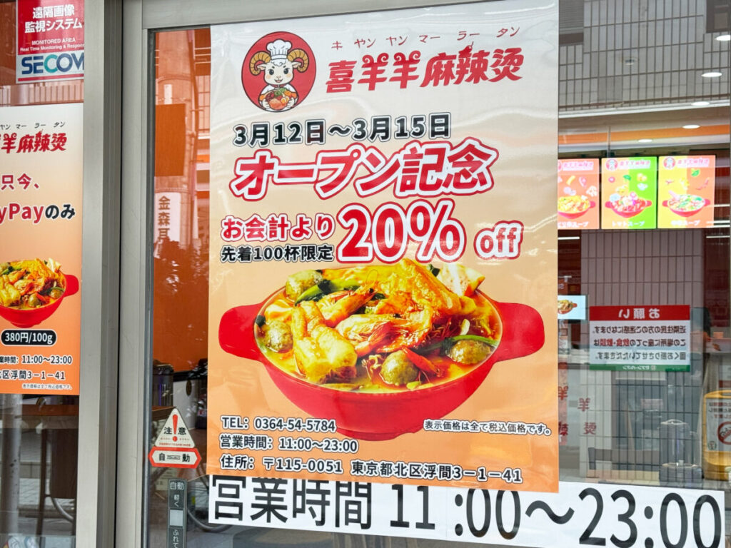 北赤羽に「喜羊羊麻辣燙」が3月12日新オープン!