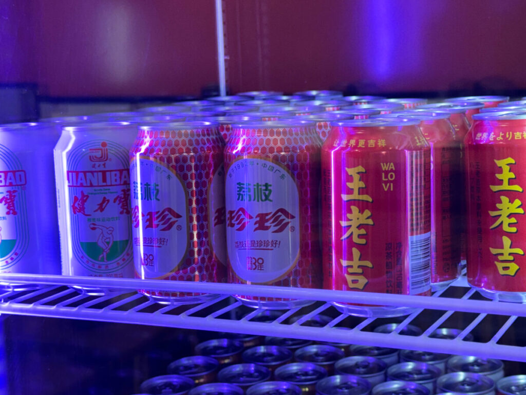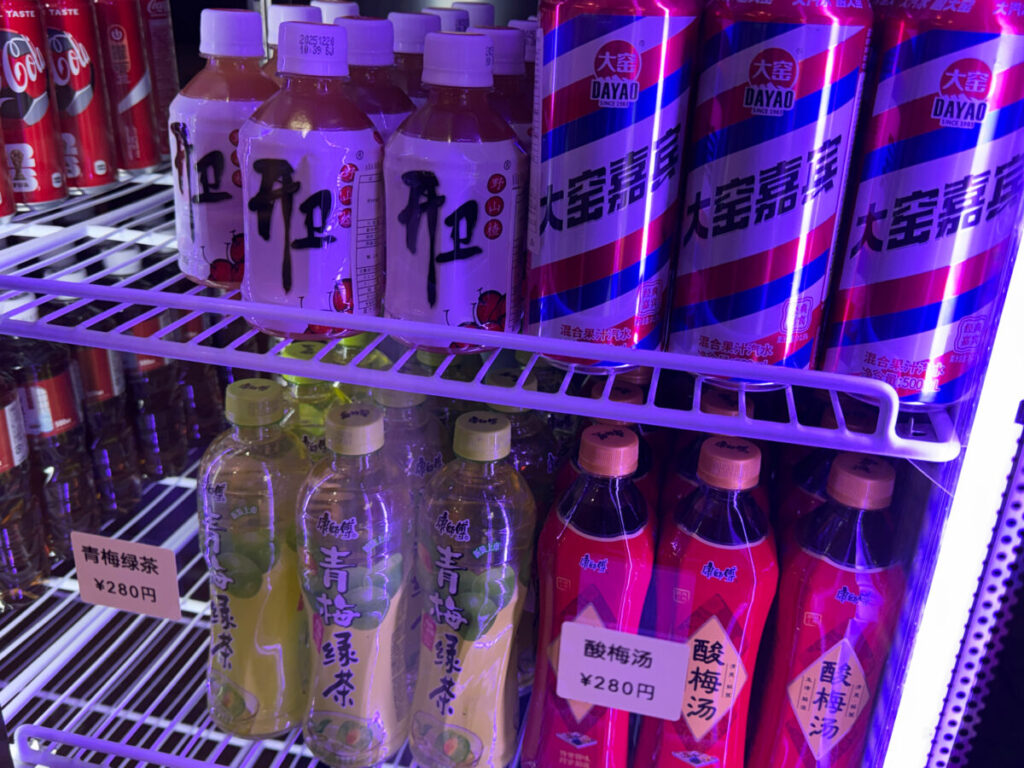 スーパードライやコーラ、サイダーなどに加えて、中国の飲み物もずらりと並んでいましたよ。