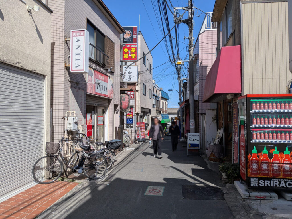 カプセル楽局を背にして左はこんな感じ。こっちに行くと、焼肉ルーレや居酒屋たぬきがあります。