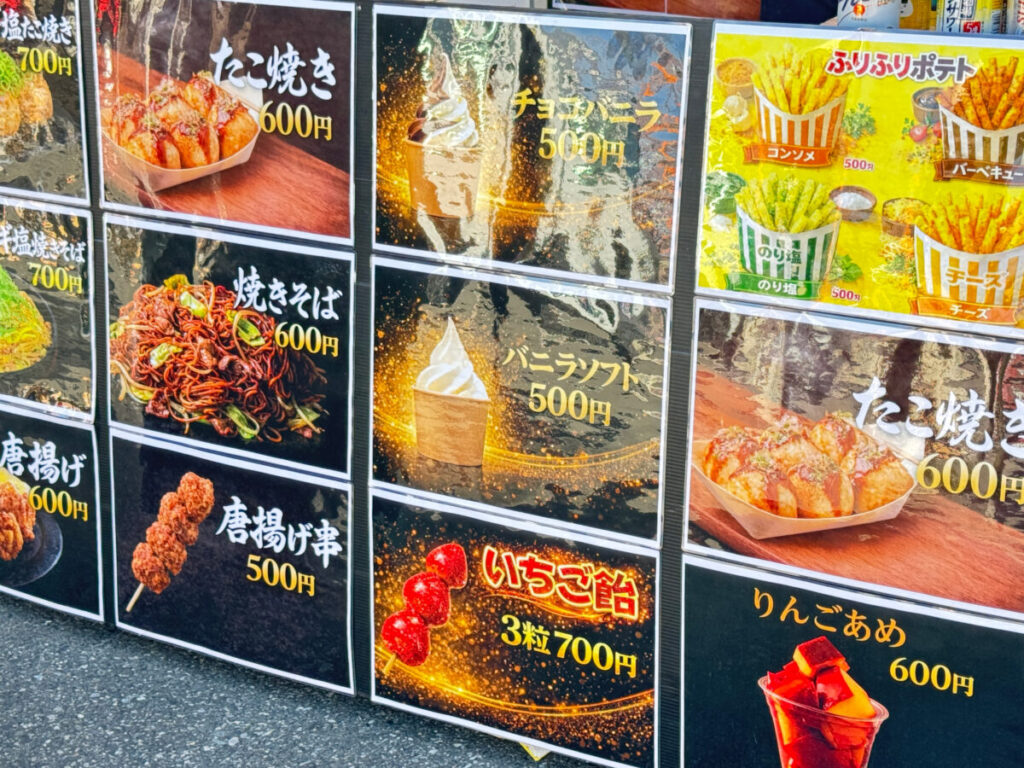 たこ焼きや焼きそば、ポテトにソフトクリームなど、お祭り感満載のメニューだ〜!