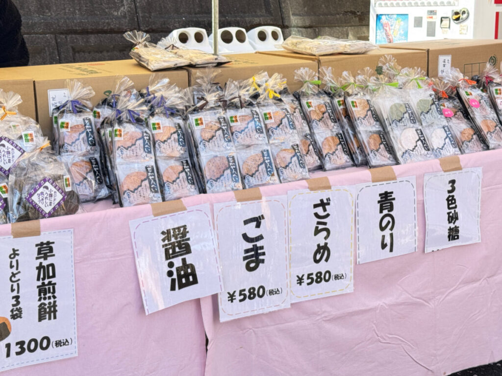 おっ、草加せんべいの”のぼり”を発見。
