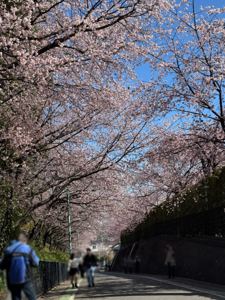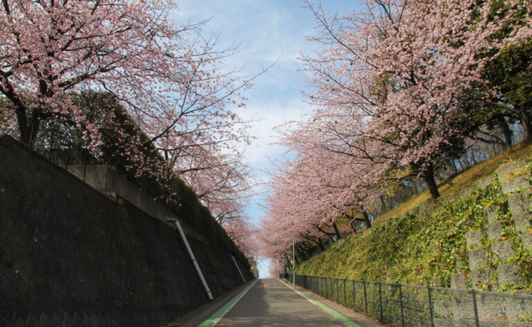 密蔵院のすぐそばの安行原自然の森沿いの坂道も素敵な桜並木です。