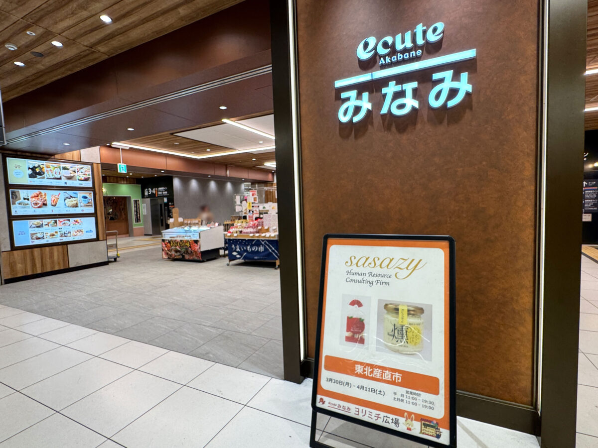 赤羽駅みなみ「青森物産展」やってる!今回のエキュート赤羽みなみのヨリミチ広場で「東北産直市」が開催中! 場所はエキュート赤羽の南改札内...