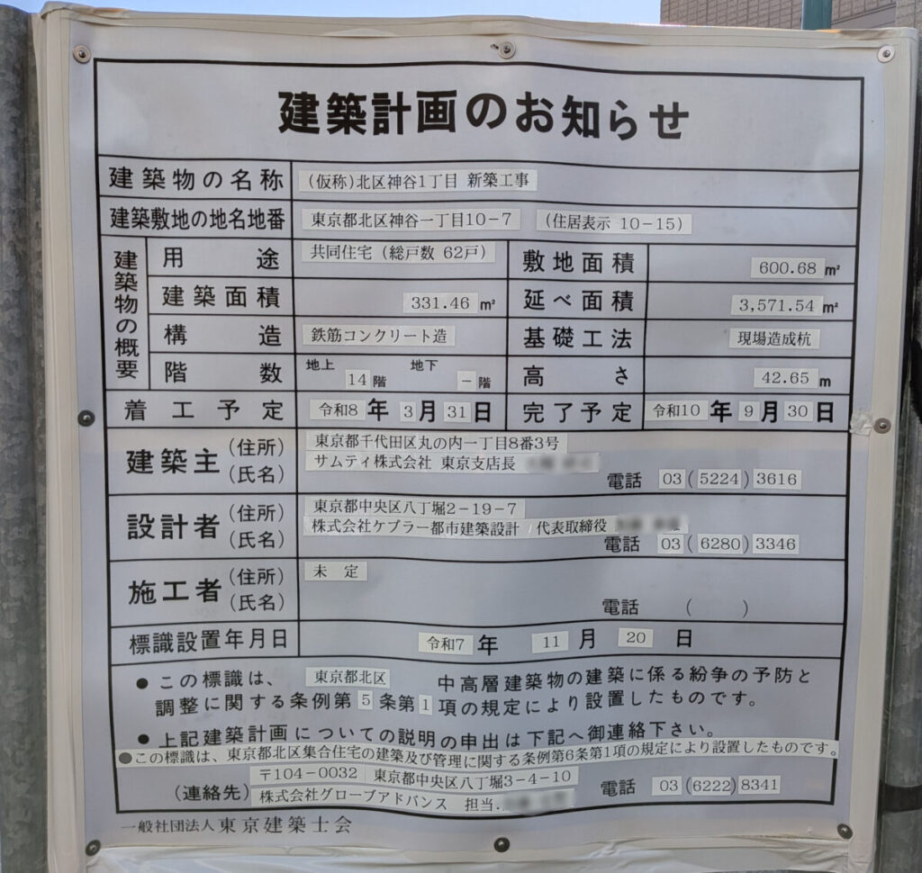 北区神谷に総戸数62戸の共同住宅ができるみたい。