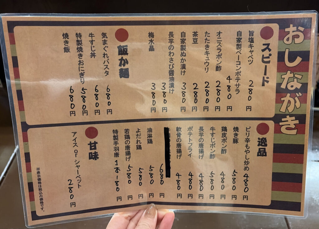 こちらが食べ物メニュー↓