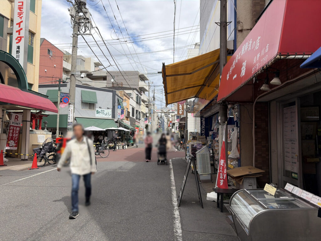 お店を背にして右はこんな感じ。隣は精肉店「一福」でその奥には「マツモトキヨシ」や「コモディイイダ 滝野川店別館」があります。