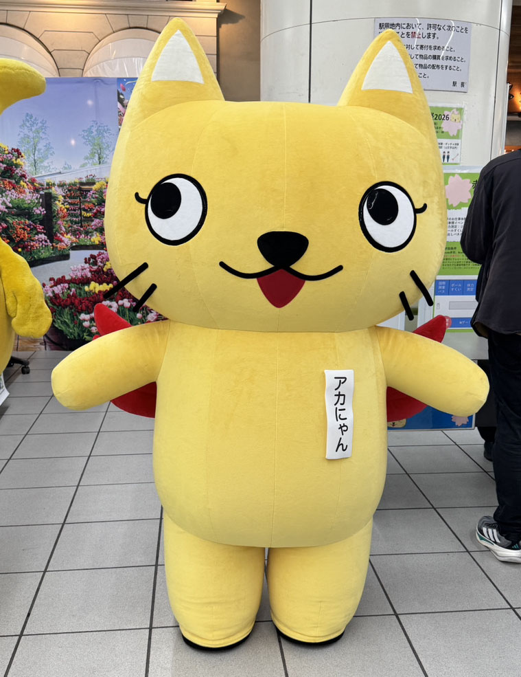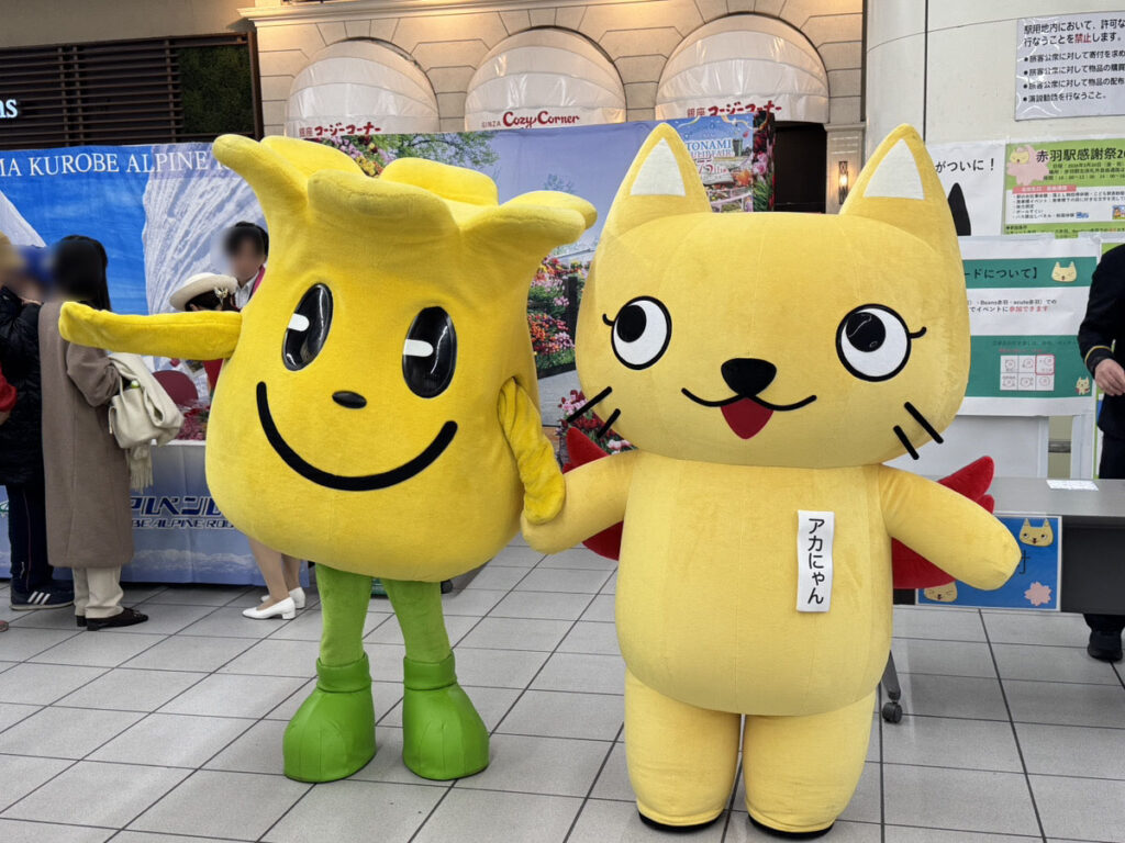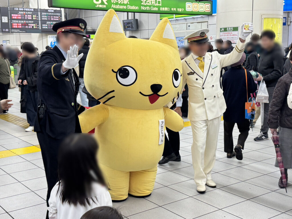速報!赤羽駅感謝祭が開催中の赤羽駅に、11時30分アカにゃん登場しました!!