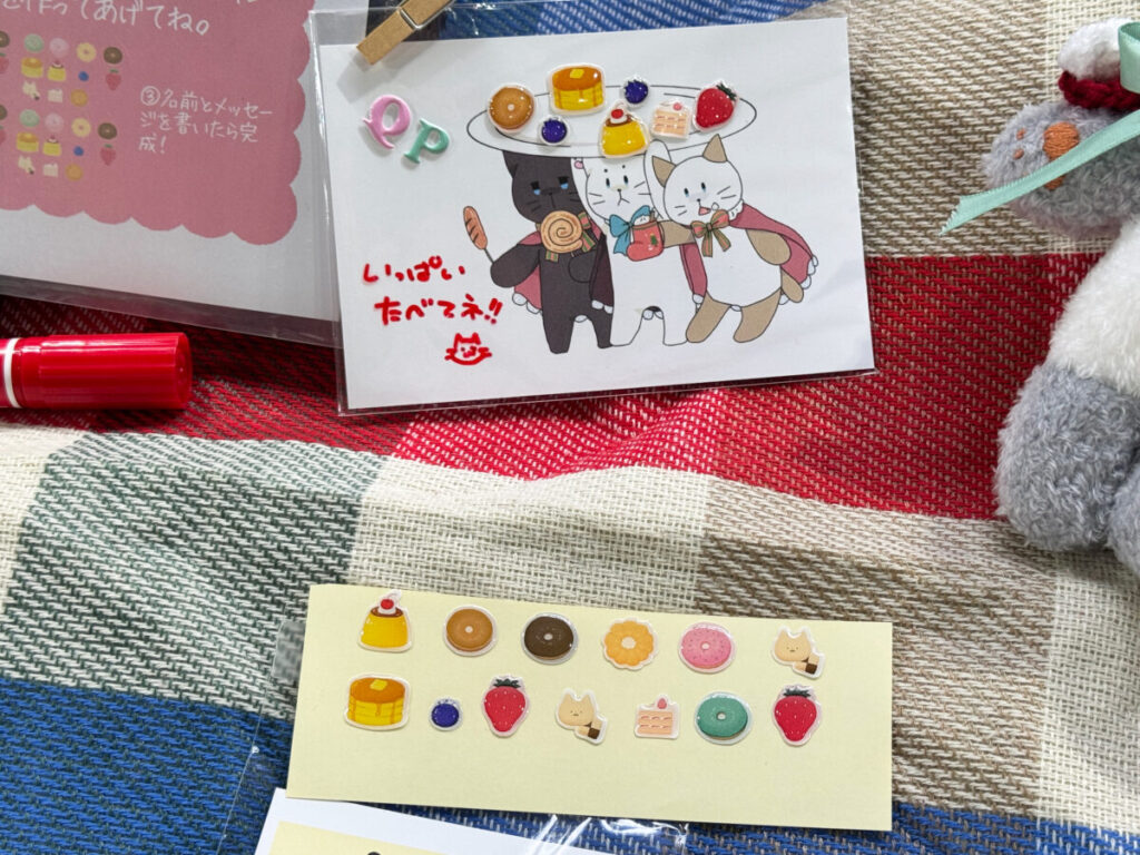 ポストカードにデザートシールを貼ってプレートを作るんだって♪かわいい〜!