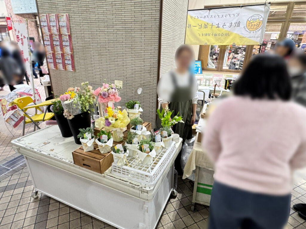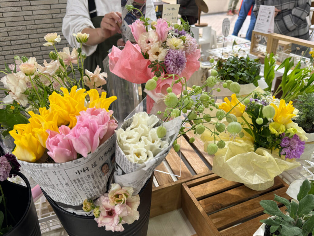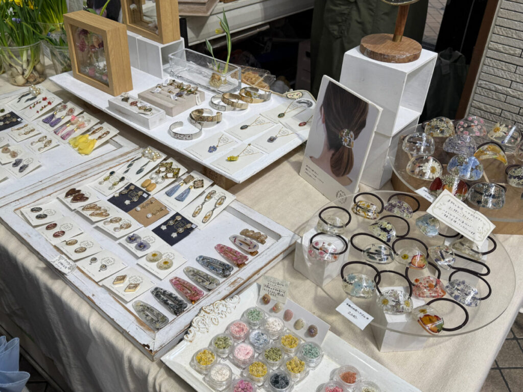 春らしい色が並ぶお花や植物と、アクセサリーなどが販売されていましたよ!