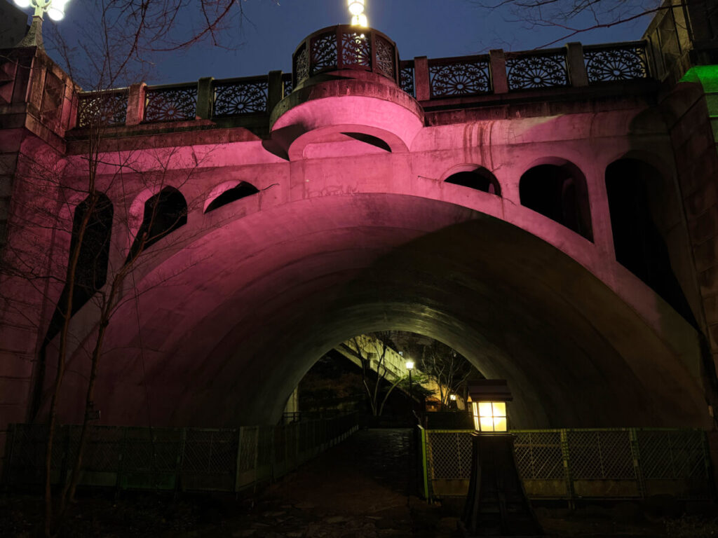 公園の中央にある橋も、色の移り変わりがとってもきれいで、うっとりしちゃいました。