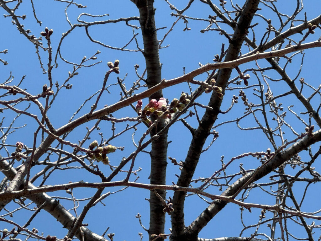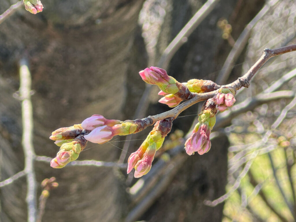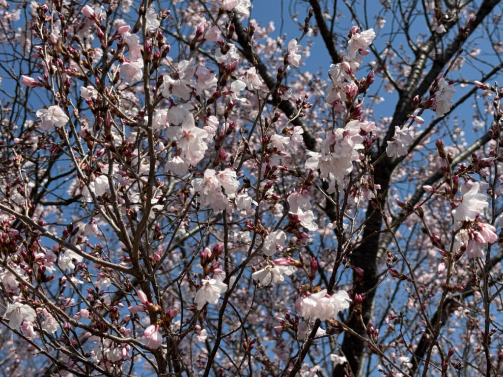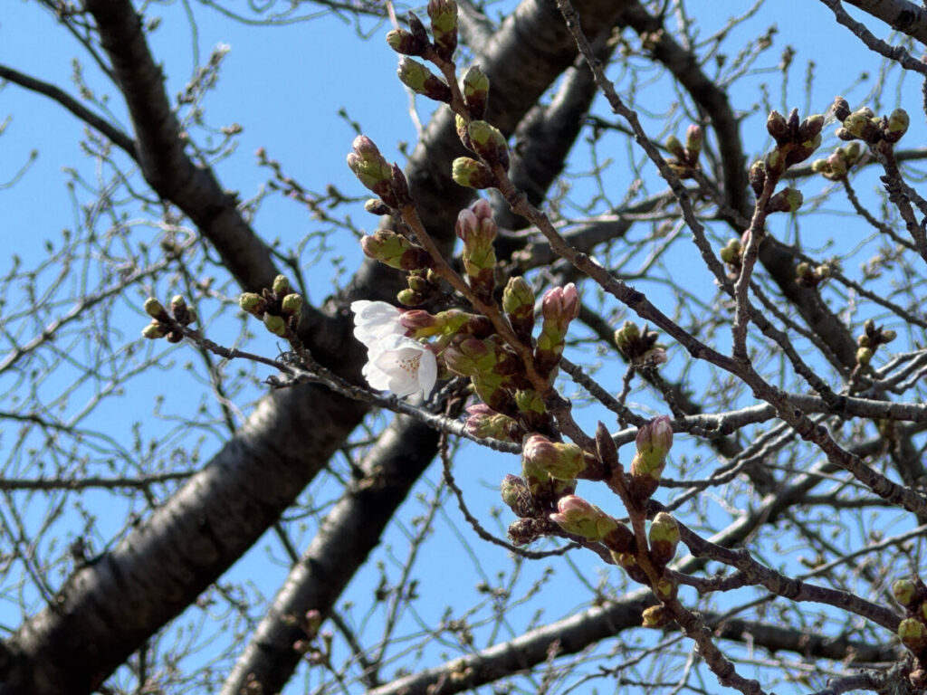 お〜!綺麗に桜が咲き始めていますね〜!これはなんという品種なんだろ。