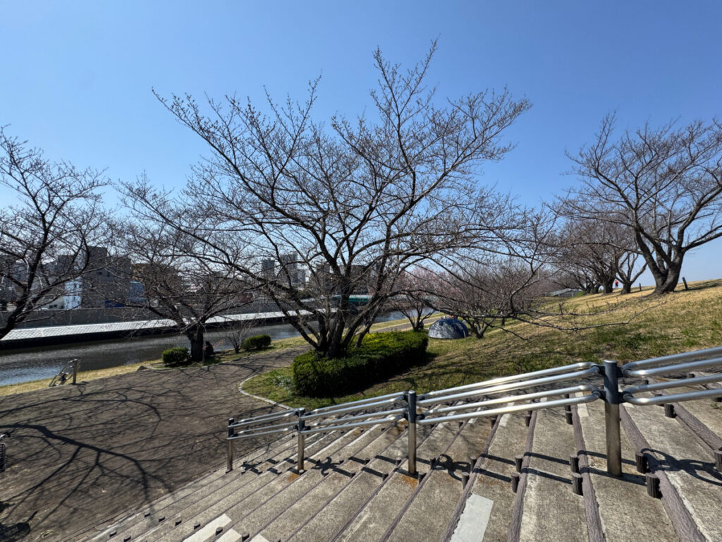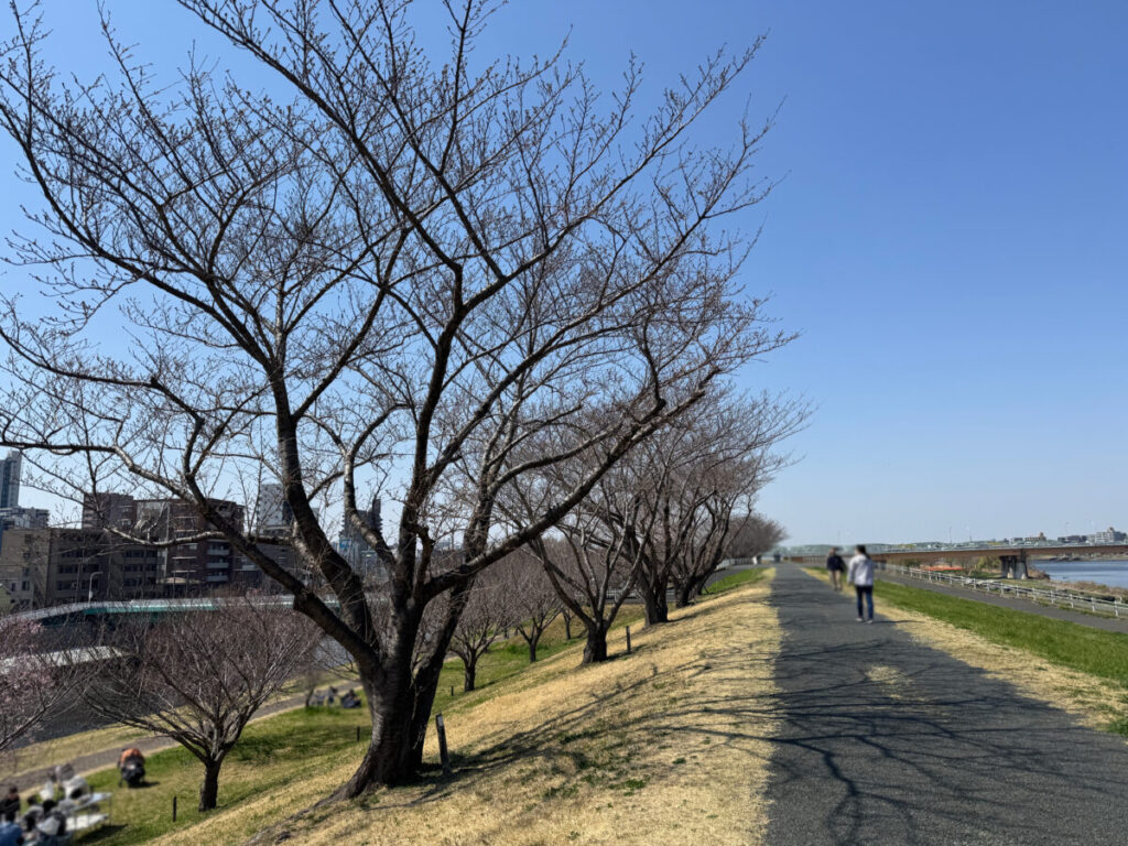 荒川の土手に桜の開花状況を見に行ってきました。3月21日(土)の様子です。