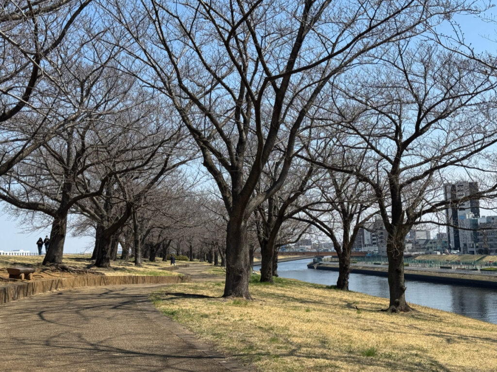 土手をずんずん進んで行ってこのあたりの桜は、