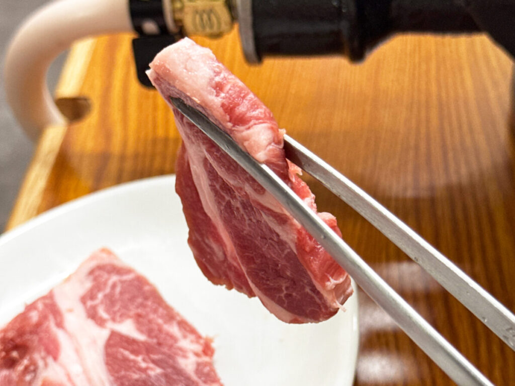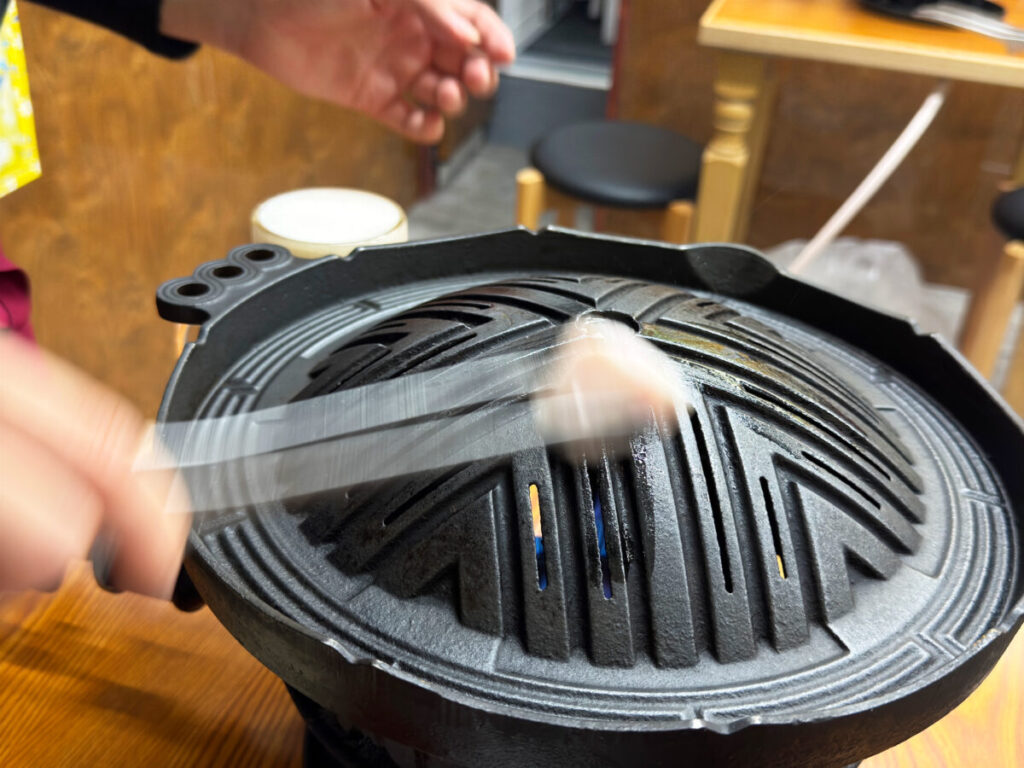 目の前のコンロには手際よく牛脂をぬりぬり。準備は万端!