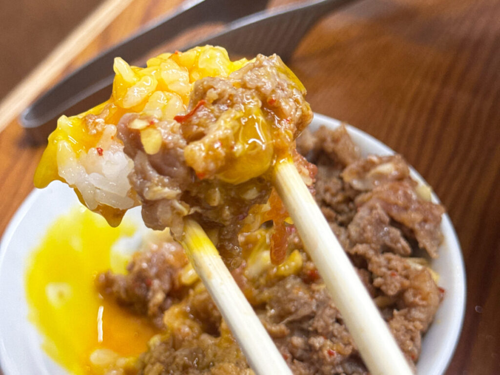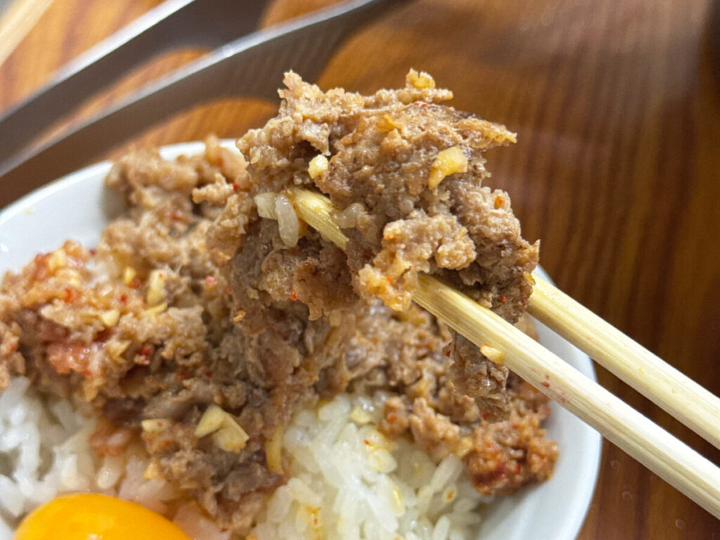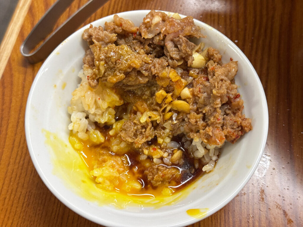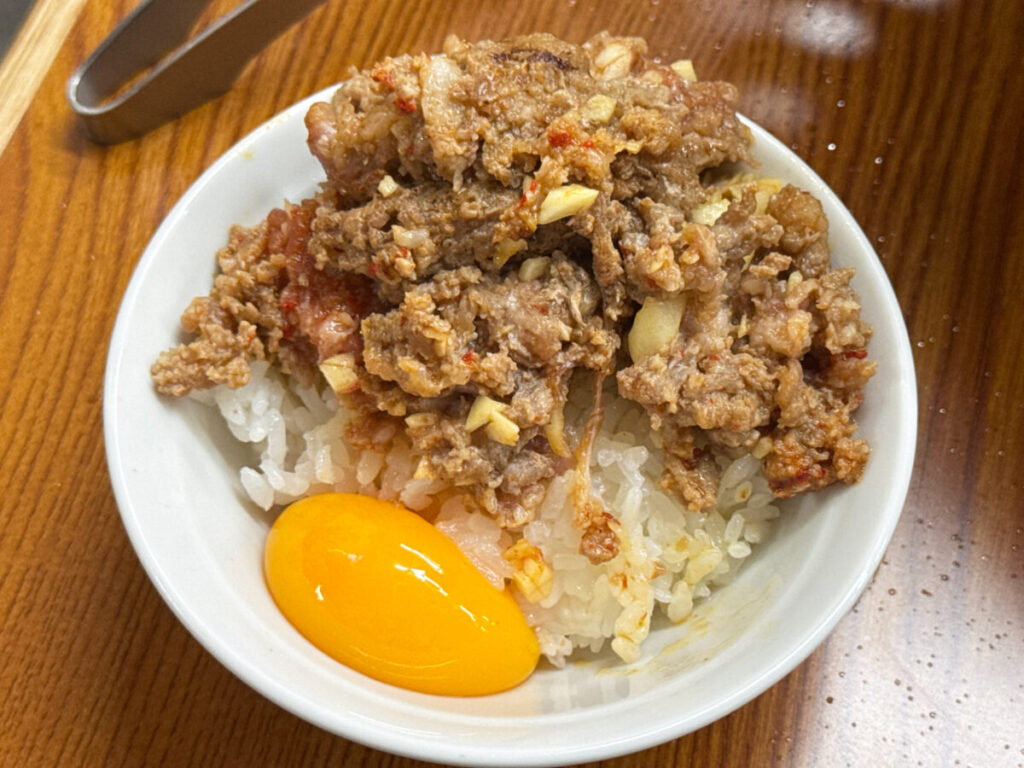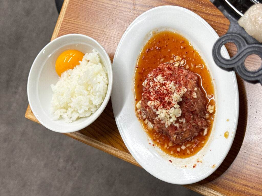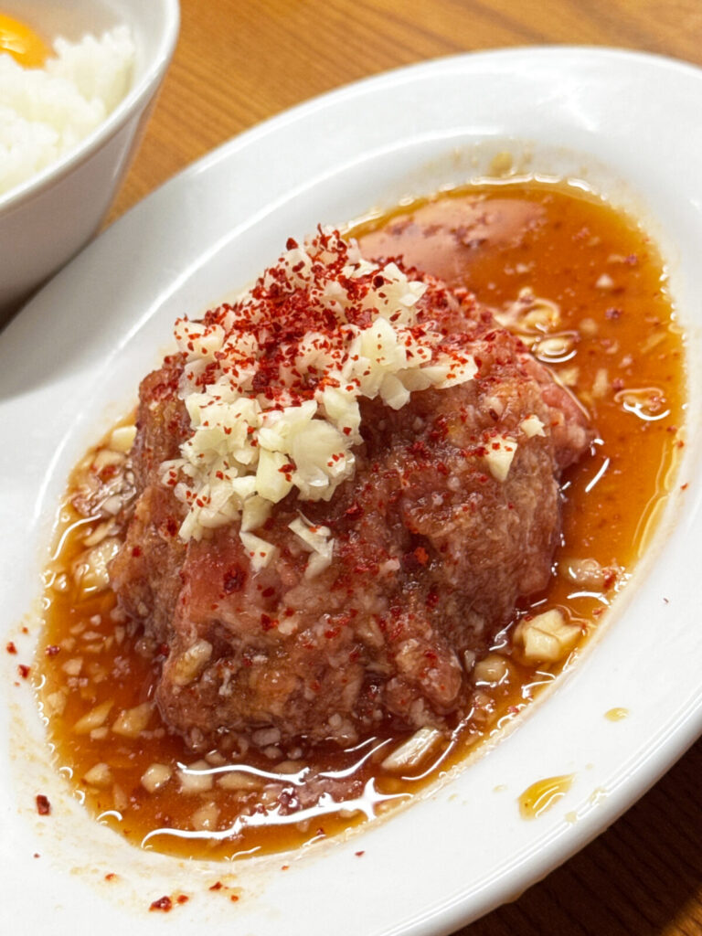 店員さんが、にんにくと生姜を入れるのがおすすめ!とのことで、タレにイン!