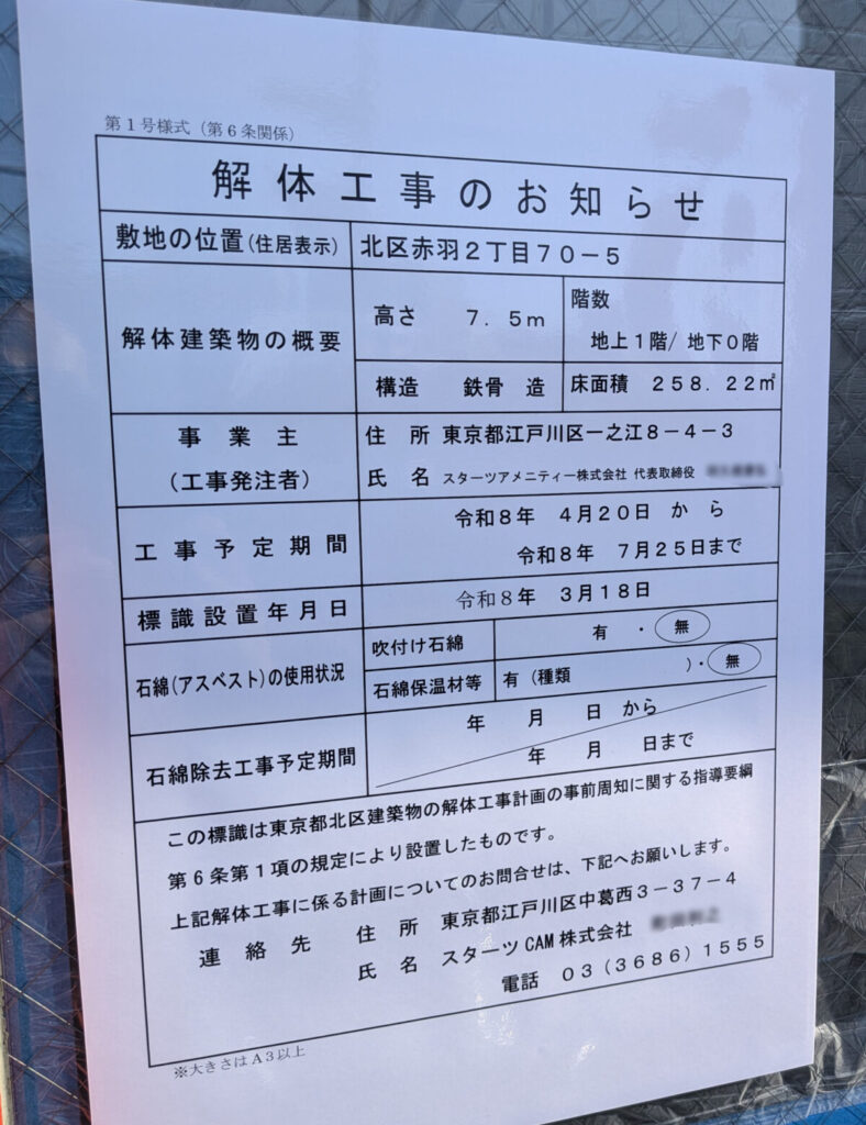 店頭に解体工事のお知らせがでてました。