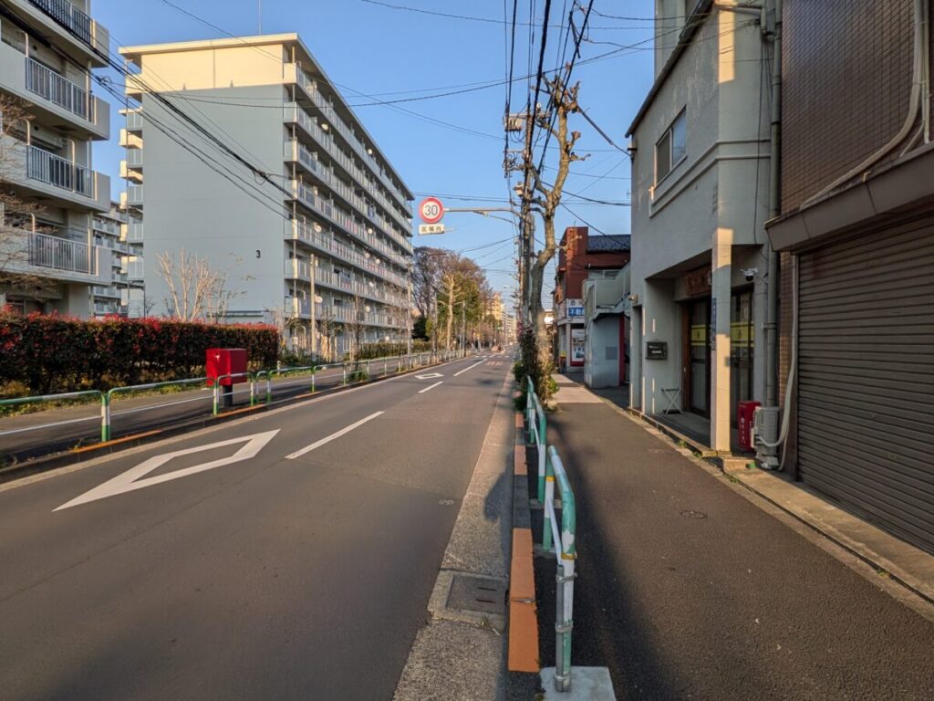 「逸口香」なる看板の場所を背にして右はこんな感じ。こっちにいくと、北区立北運動場やイオンスタイル赤羽があります。