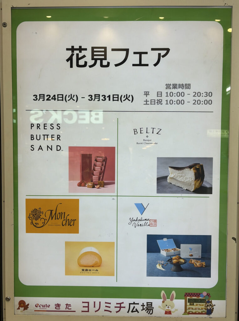 赤羽駅きたで「お花見フェア」♪赤羽初上陸の『横浜バニラ』も出店中!