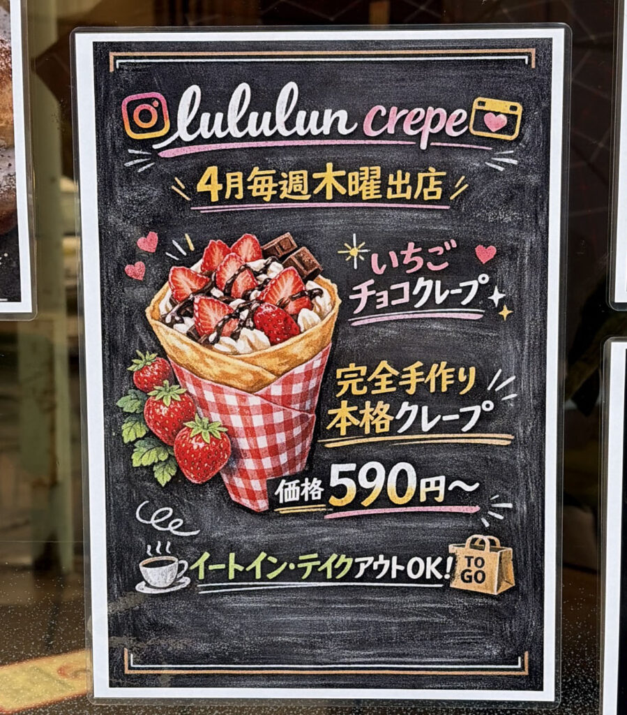 「lululun crepe 毎週木曜日出店」と書いてありますよ!