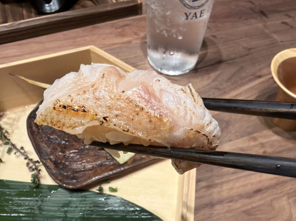日本酒をチビチビたしなみつつ、のどぐろ炙りのお寿司もぱくりっ!