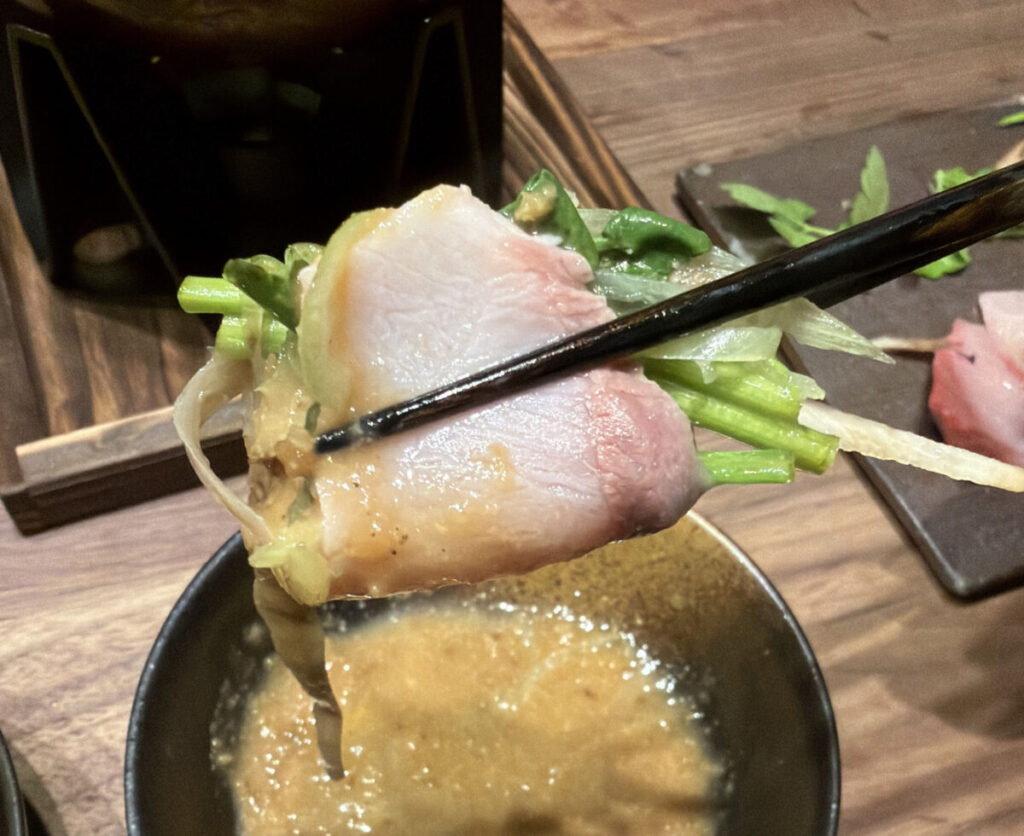 鍋のお湯が沸くのを待ちきれず、早々にしゃぶしゃぶ。