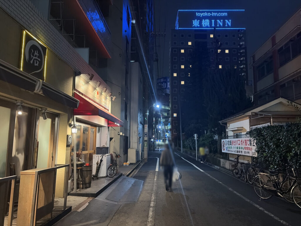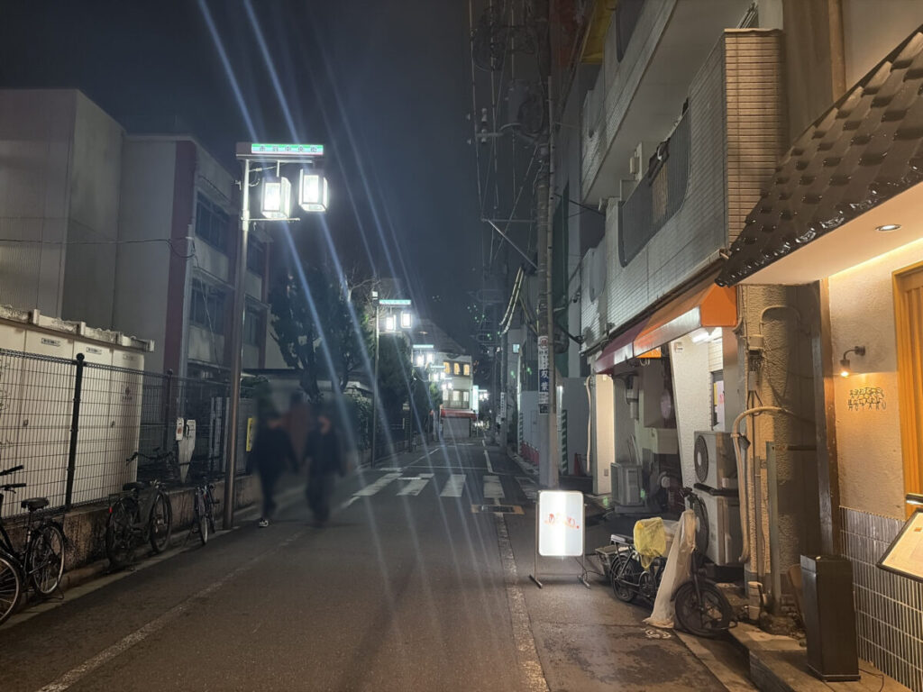 お店を背にして右はこんな感じ。進むと赤羽中央街で、「赤羽スペインクラブTERA TERA」が見えます。